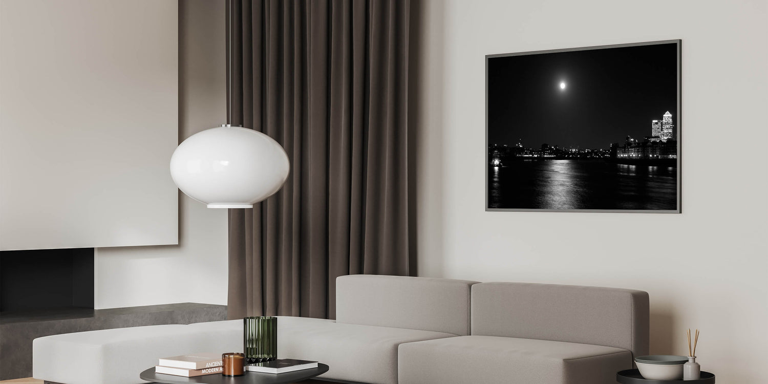 This Thames Canvas Print is ideal for those seeking a bold yet understated piece of Framed London Art. The black-and-white aesthetic paired with the moonlit skyline creates a striking addition to any space, from modern apartments to classic homes.