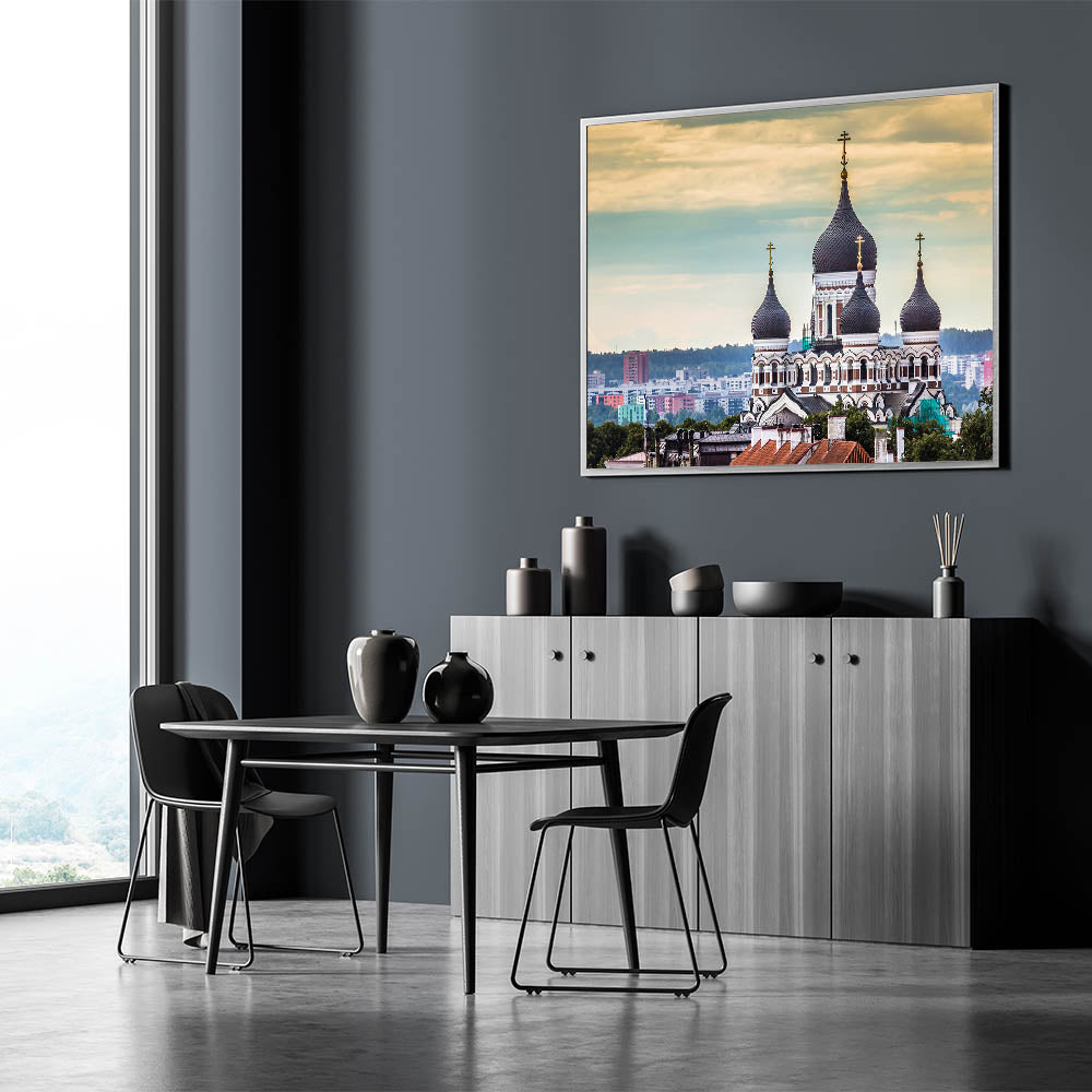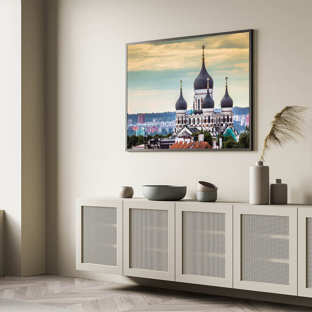 Celebrate the architectural beauty of Estonia with this stunning wall art, featuring the iconic domes of a historic church in Tallinn. The intricate details of the domes, set against the backdrop of a modern cityscape, create a striking visual contrast between history and contemporary life. This unique piece of art is perfect for those who appreciate Estonian architecture and Northern European cultural heritage.