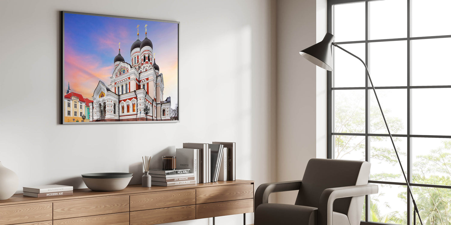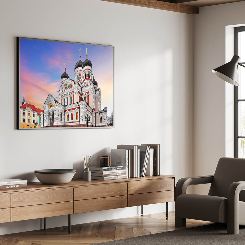 Admire the stunning beauty of Tallinn’s iconic cathedral with this vibrant wall art. The exquisite architectural details of the cathedral, combined with the soft hues of the sky at dusk, create a breathtaking scene that celebrates Estonia’s rich cultural heritage. This artwork is perfect for anyone who appreciates the beauty of Northern European architecture and the historic charm of Tallinn.