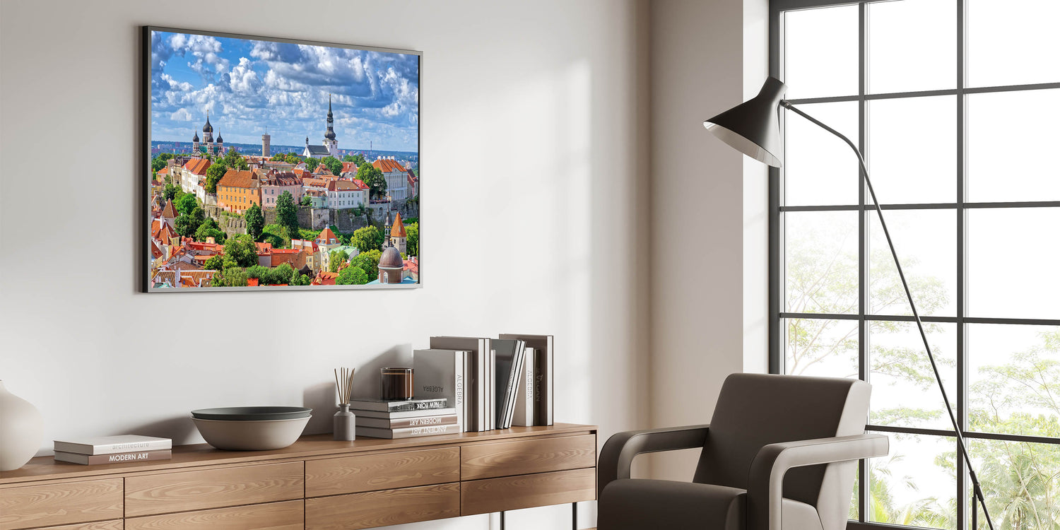 - High-resolution printing ensures every detail of Tallinn’s skyline is preserved.