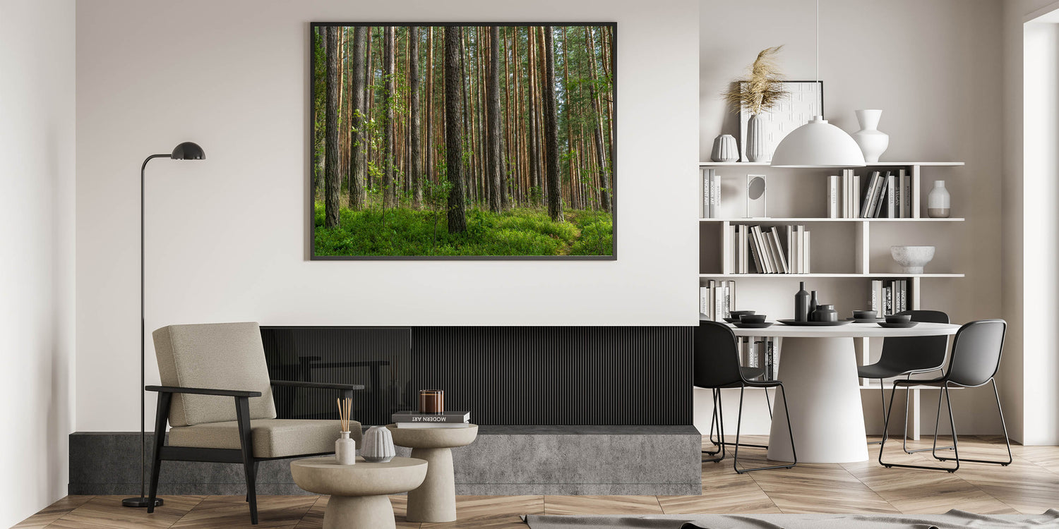 This artwork brings the tranquility of Lithuania’s forests to your space, creating a soothing atmosphere perfect for bedrooms, living rooms, or offices. The harmony between nature and simplicity makes this an ideal addition for nature-inspired interiors.