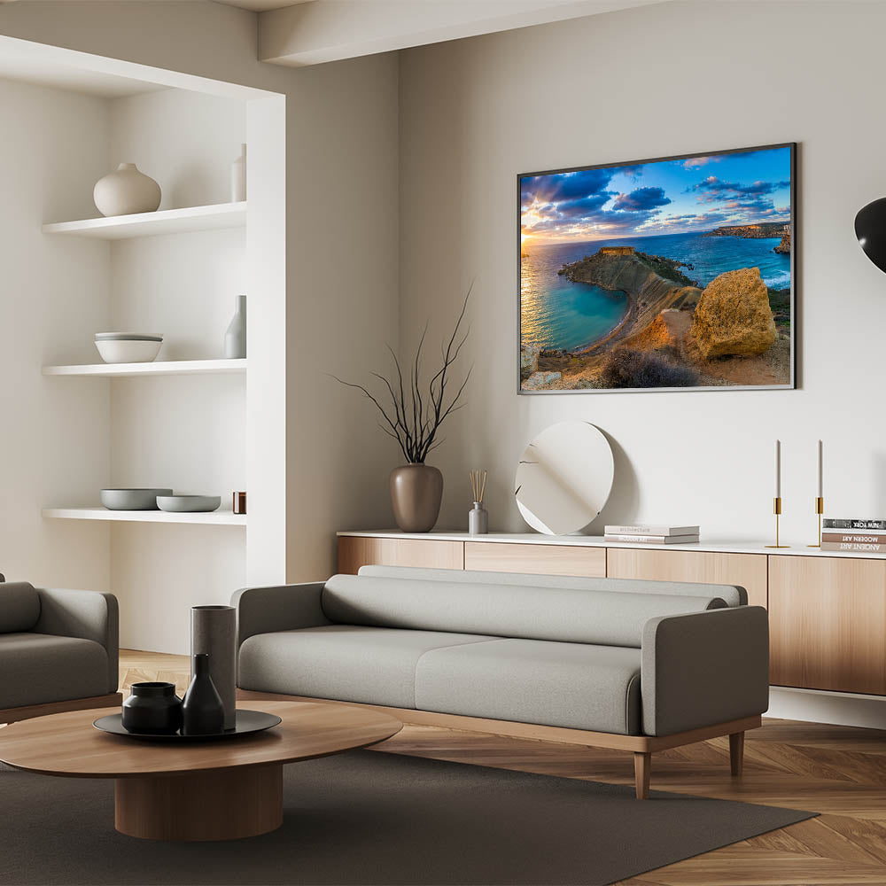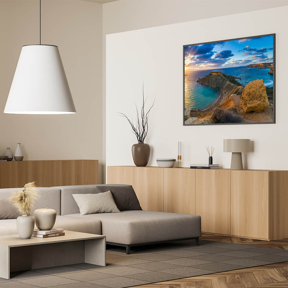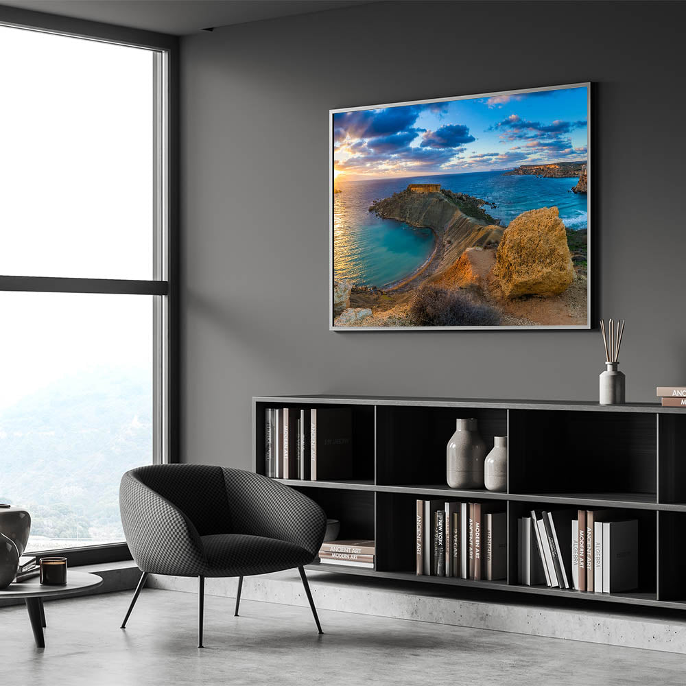 Bring the beauty of Malta's coastal sunsets into your home with this breathtaking piece of art. Whether as a centerpiece or a complementary accent, this artwork will add a sense of warmth and serenity to your living space, reminding you of the peaceful Mediterranean shores.