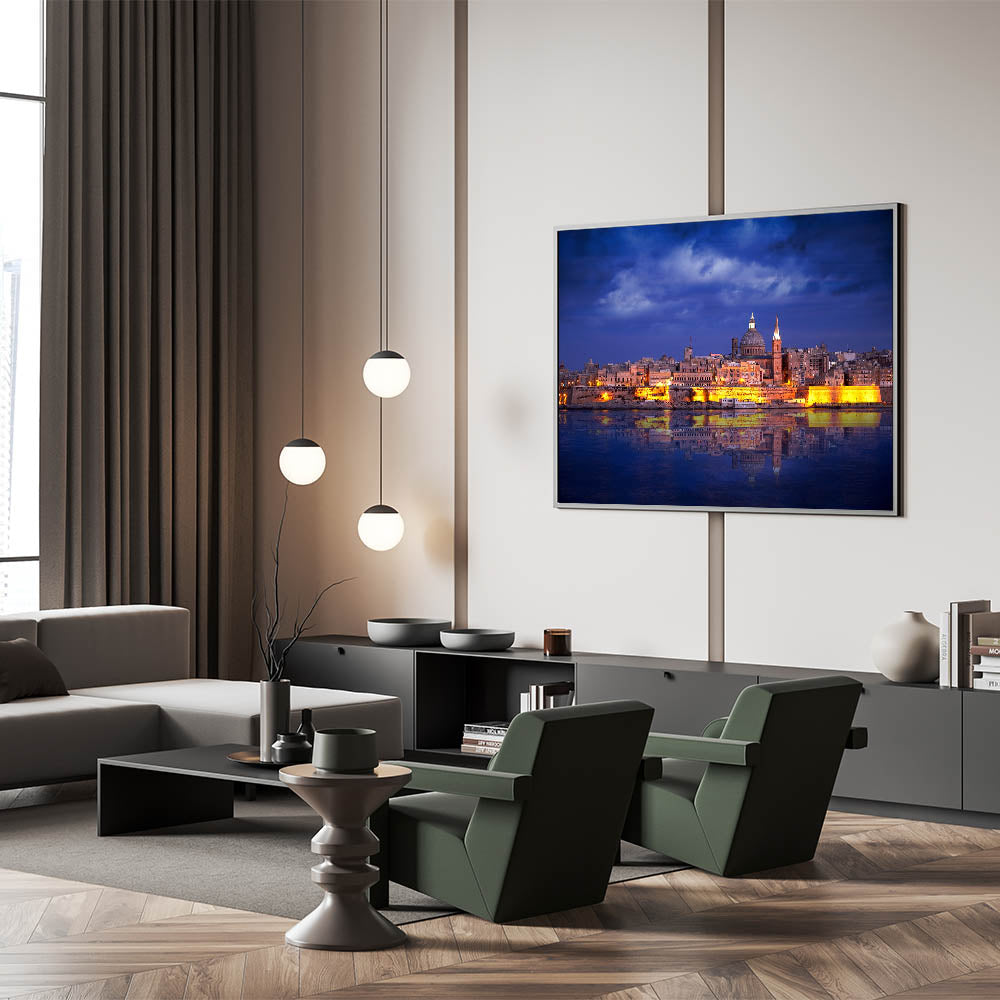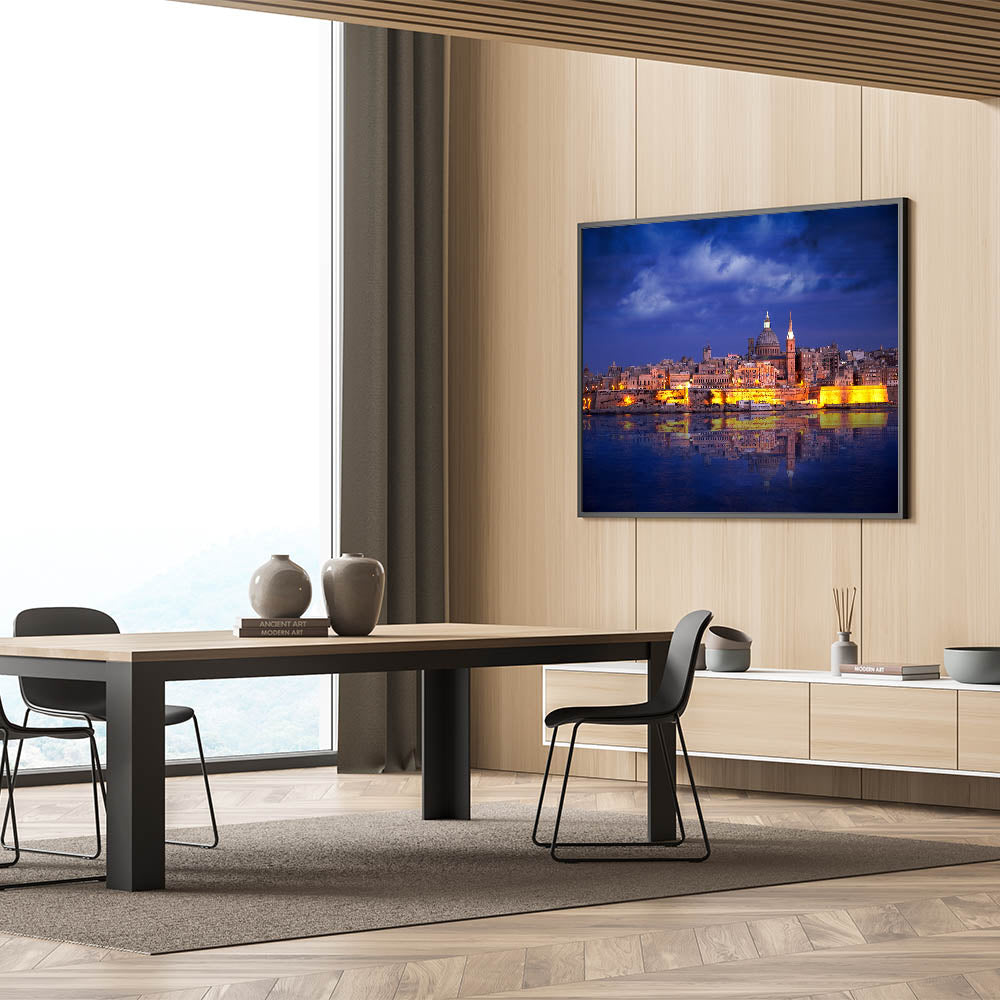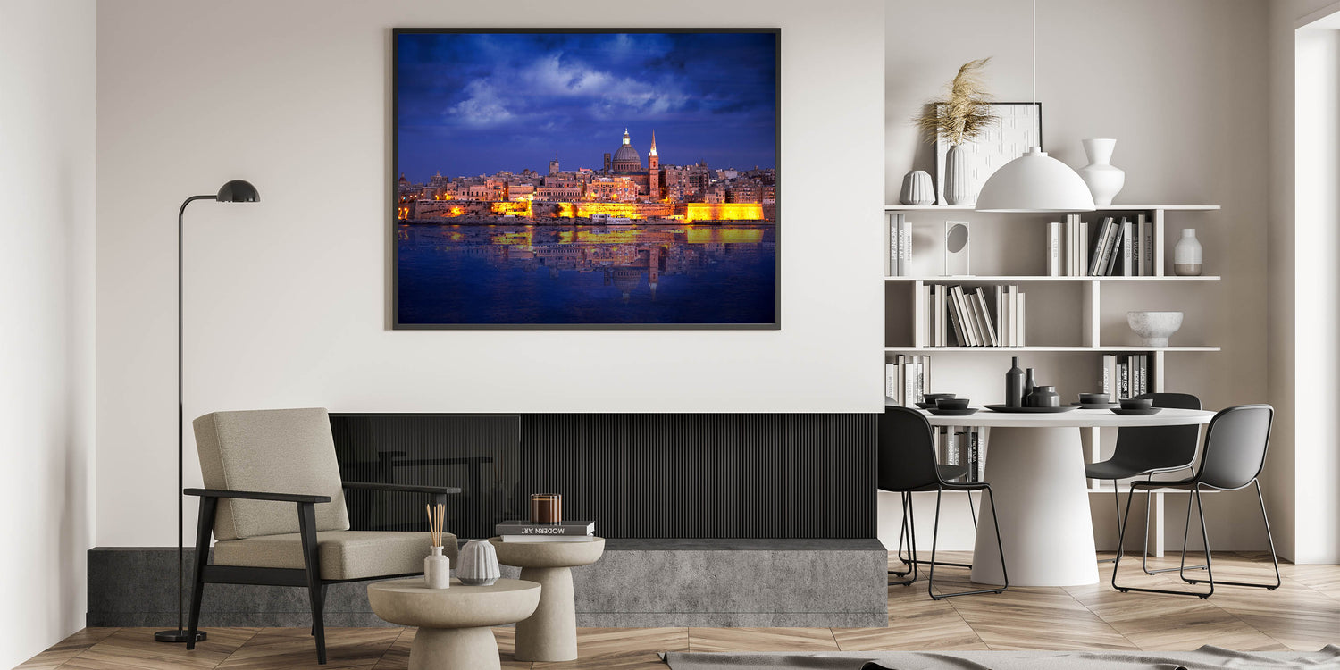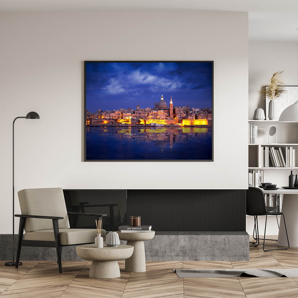 Transform your living space with this elegant piece of Maltese history. The brilliant combination of architecture and evening glow makes this art a sophisticated addition to any room, giving you a glimpse of Valletta's rich cultural heritage.