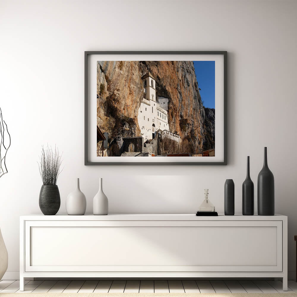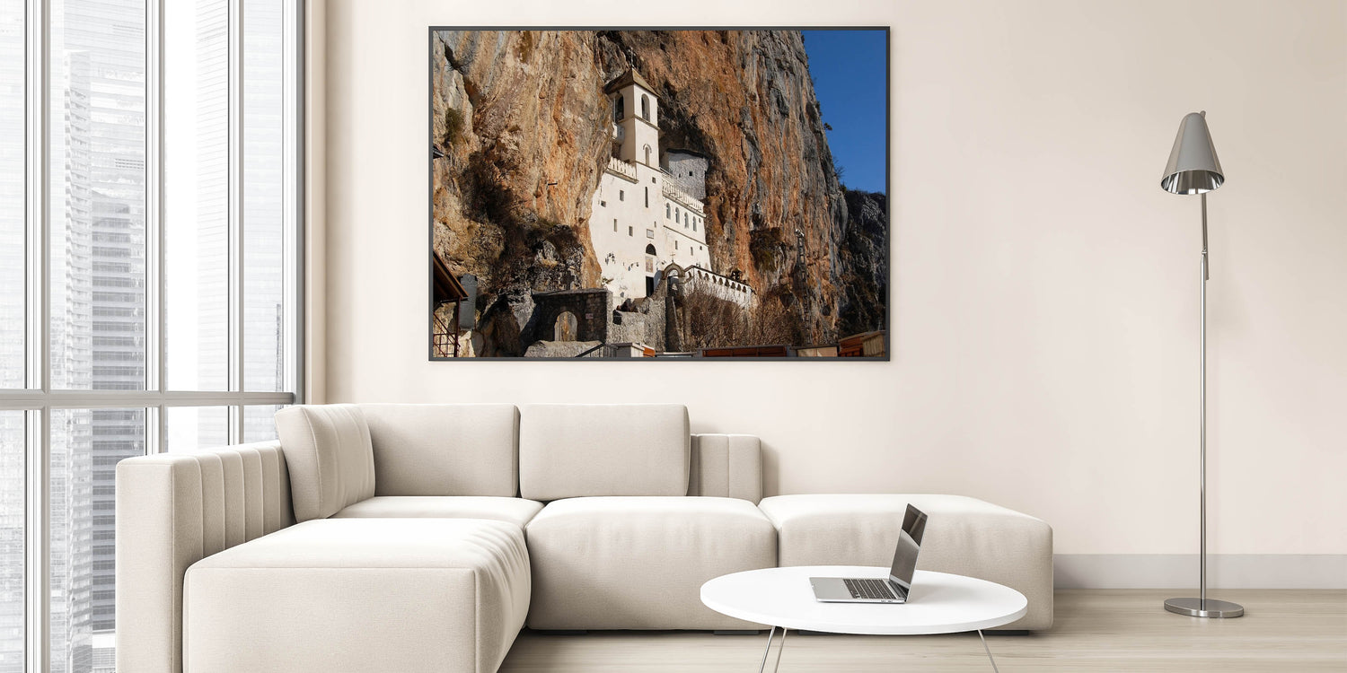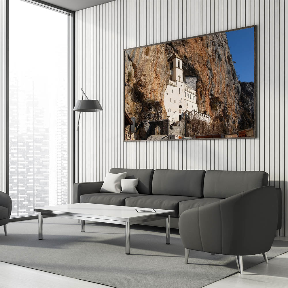 - Handcrafted Montenegro art featuring the iconic Ostrog Monastery, available on canvas, acrylic glass, and framed prints.