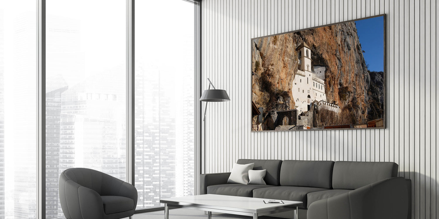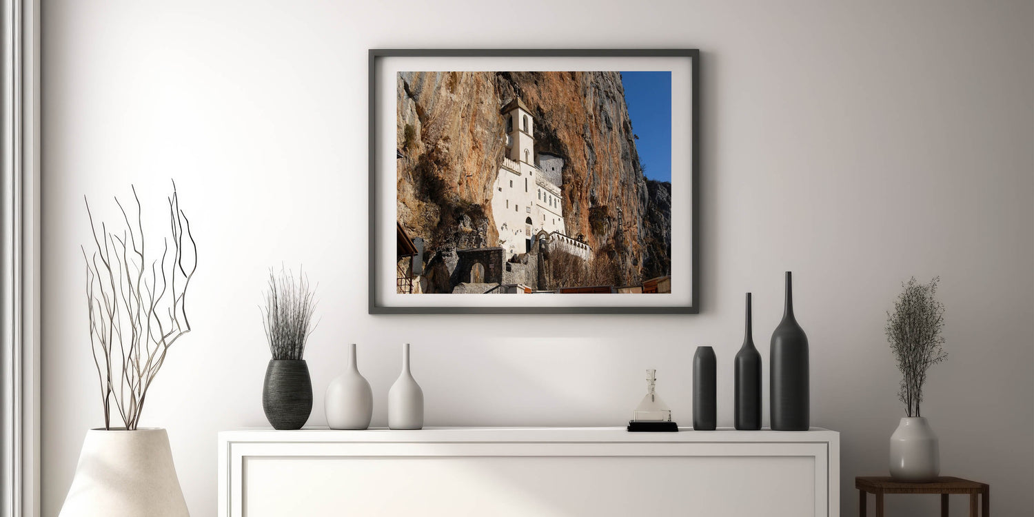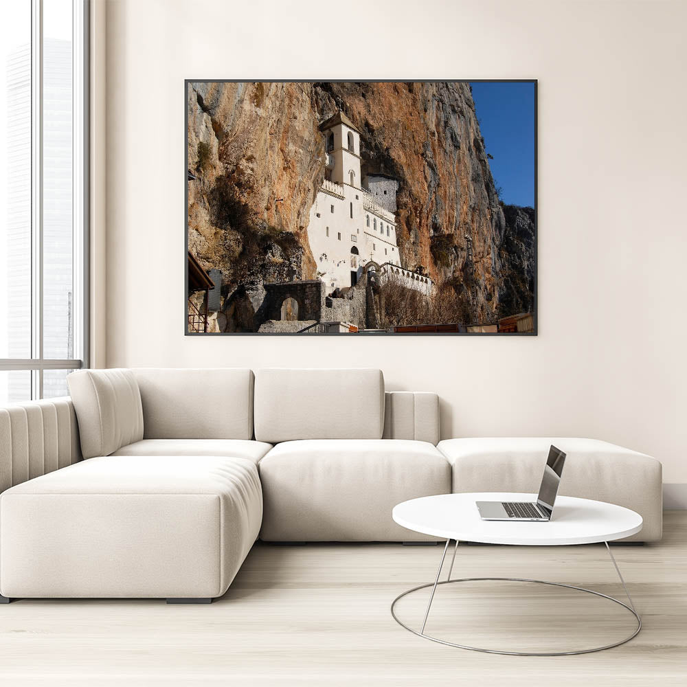- Handcrafted Montenegro art featuring the iconic Ostrog Monastery, available on canvas, acrylic glass, and framed prints.