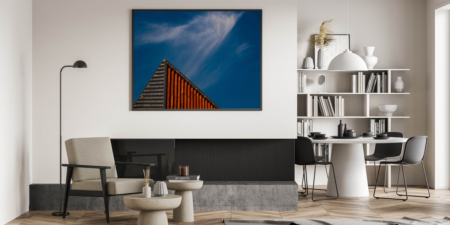 Add this striking piece of Lithuania wall art to your space, and let the stunning geometry of Vilnius architecture elevate your interior design.