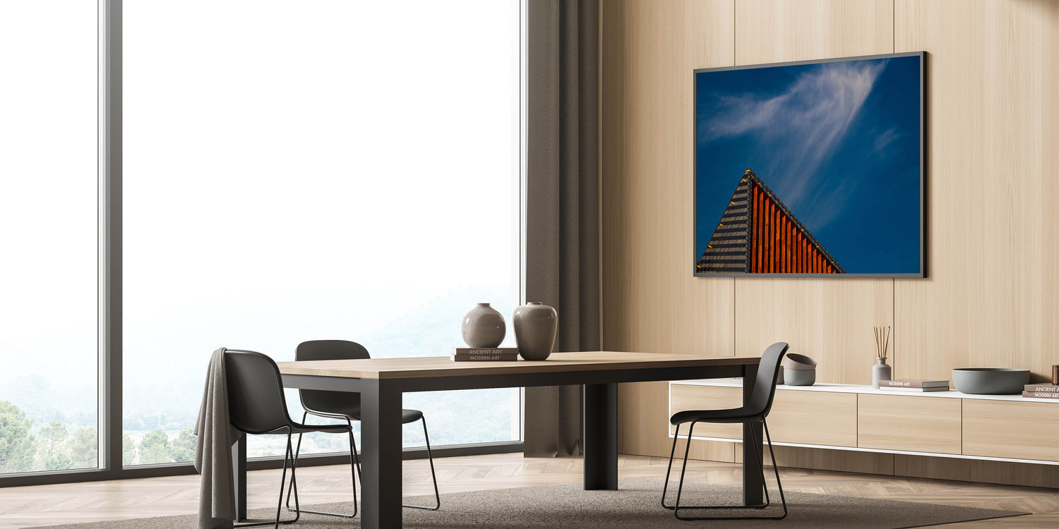 - High-resolution prints with bold architectural lines and vibrant colors.