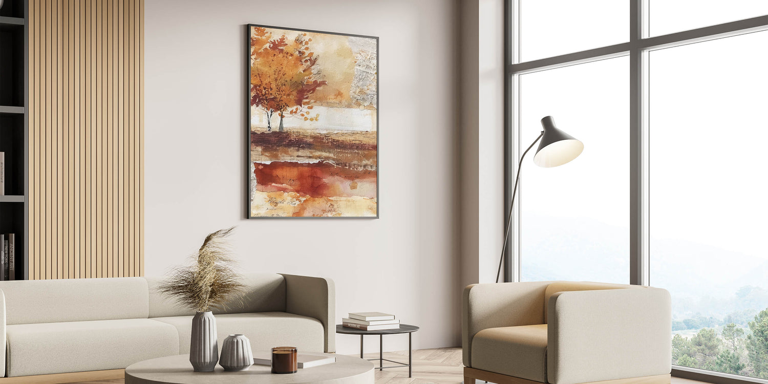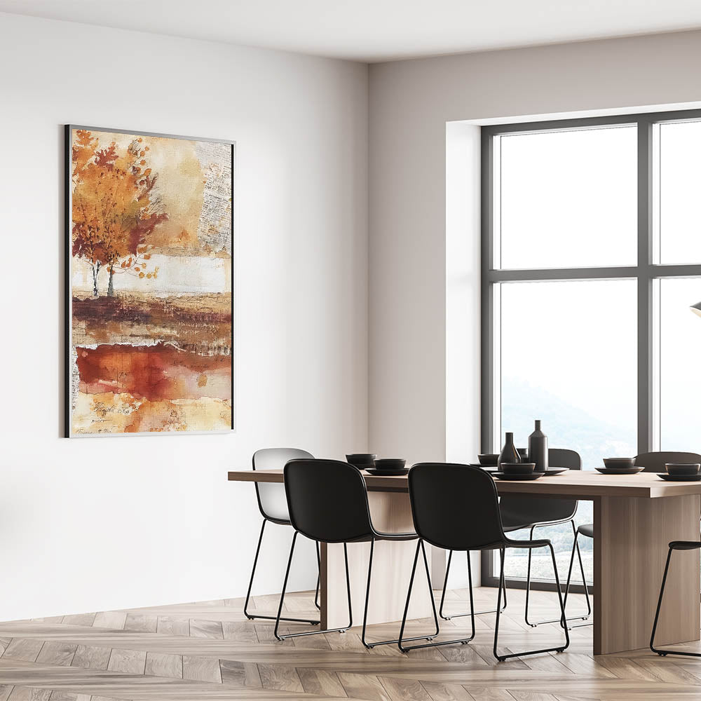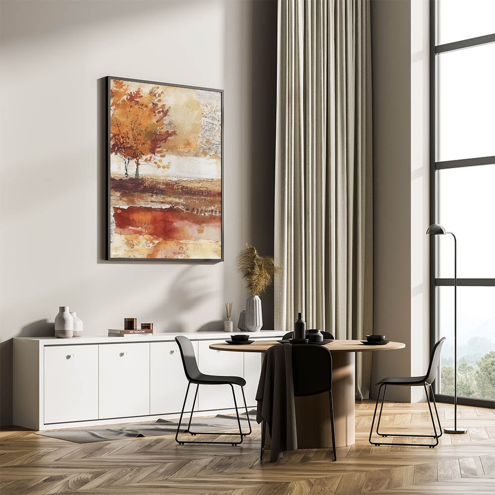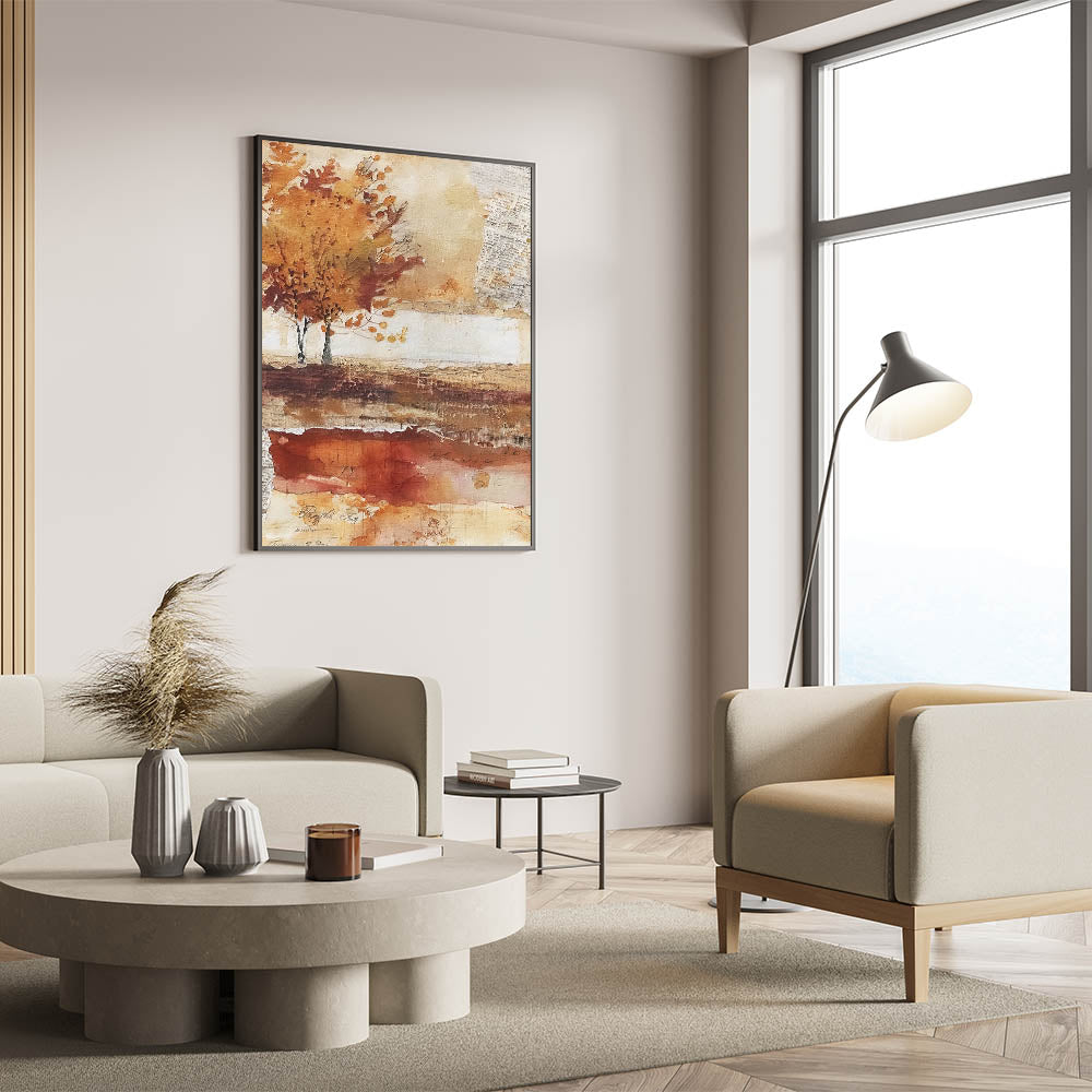 Experience the essence of the autumn season with this beautiful artwork inspired by the changing fall landscape. Featuring shades of warm beige, burnt orange, and rich red, this piece captures the rustic beauty of fall leaves and the serene feeling of a crisp autumn day. It’s a perfect choice for seasonal wall decor, bringing a cozy and inviting touch to your living space.