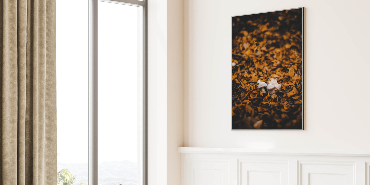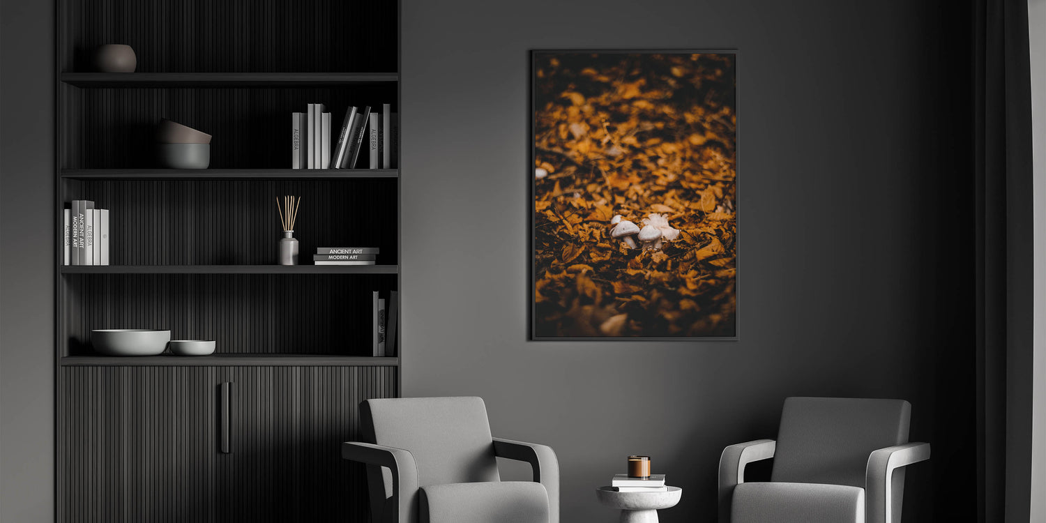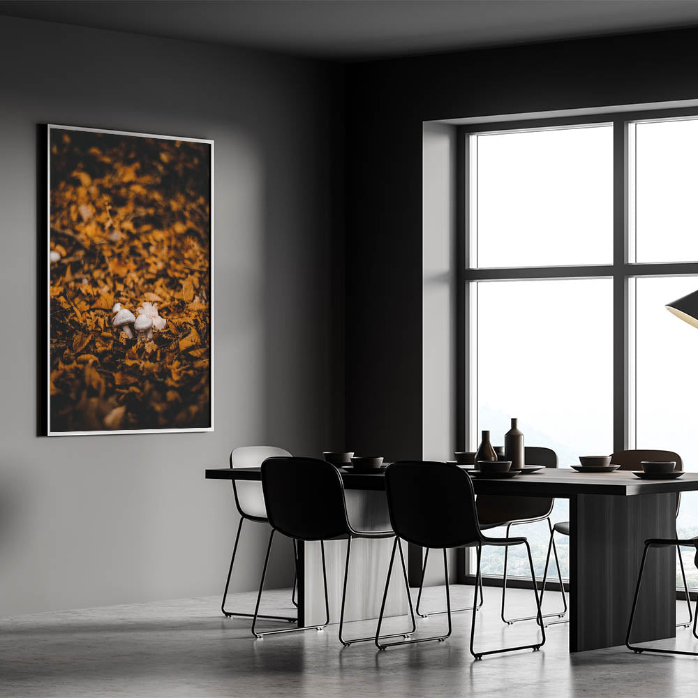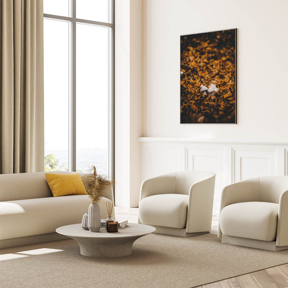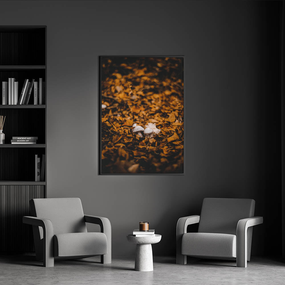 Immerse yourself in the beauty of fall with this autumn wall art, featuring delicate mushrooms nestled among golden fallen leaves. The rich earthy tones and soft lighting create a warm, rustic atmosphere, making this fall canvas art a stunning addition to any home or office. Whether you love nature-inspired decor or the magic of the forest floor, this fall wall decor brings the season’s charm indoors.