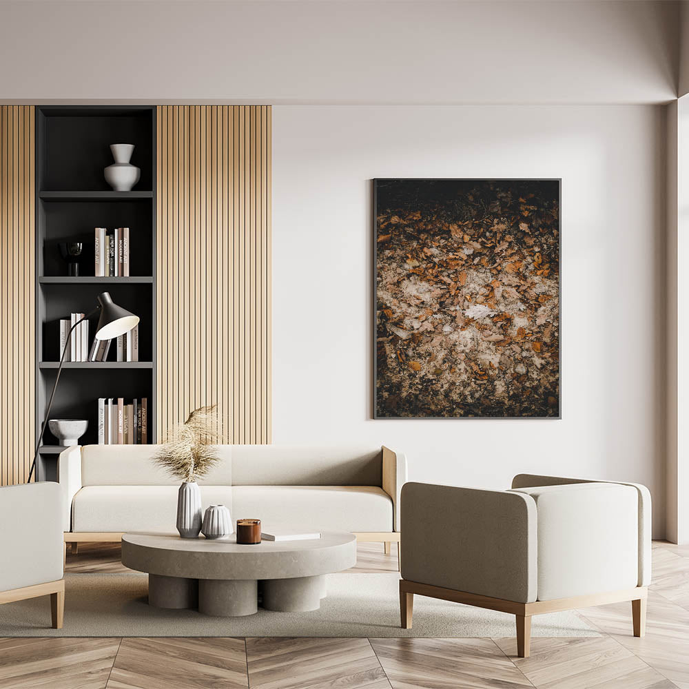 Capture the beauty of the season with this fall wall art, featuring a natural display of scattered autumn leaves on textured ground. The warm hues of brown, beige, and muted gold create a rustic and organic ambiance, making this autumn canvas art a perfect addition to any home. Whether displayed in a living room, hallway, or office, this fall canvas art brings a cozy seasonal charm to your space.
