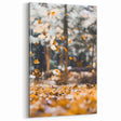 Capture the magic of autumn with this stunning fall wall art, showcasing golden leaves swirling in mid-air against a dreamy forest backdrop. The soft focus and warm tones create an enchanting scene, making this autumn canvas art a perfect addition to any cozy space. This artwork evokes the peaceful rhythm of fall, where crisp air and falling leaves mark the change of seasons.