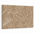 Elevate your space with this modern autumn wall art, featuring a sleek and minimalist leaf pattern design in soft beige and white. The delicate line art of various fall leaves creates a timeless and elegant composition, making this fall canvas art perfect for those who love contemporary and nature-inspired décor. With its neutral earthy tones, this artwork seamlessly blends into minimalist, Scandinavian, and modern interiors.