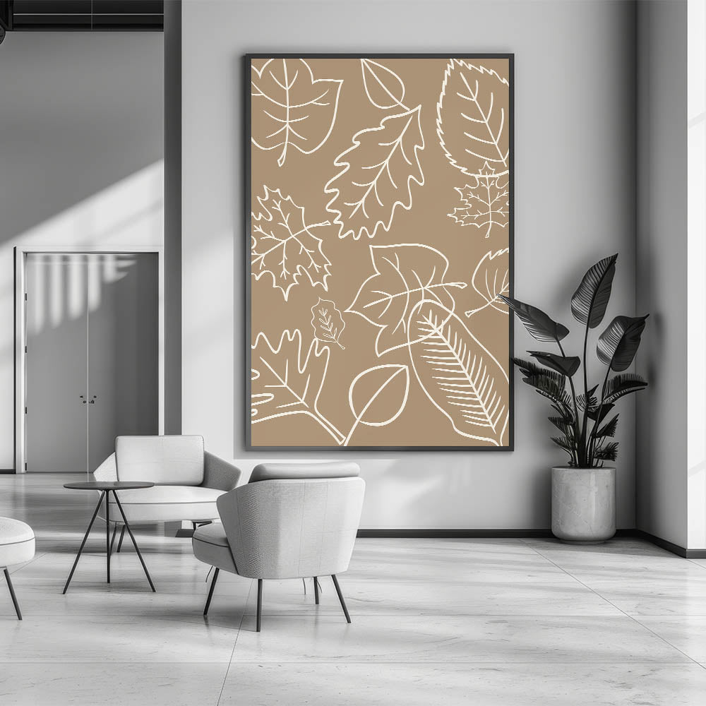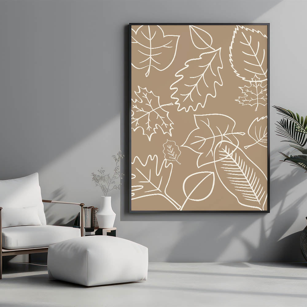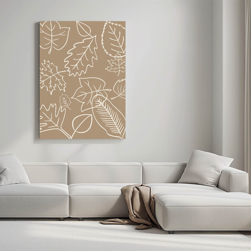 Bring a touch of autumn elegance to your space with this Minimalist Fall Leaves Wall Art, featuring a modern line-art design of various seasonal leaves. The soft beige outlines on a warm brown background create a stylish and contemporary Autumn Canvas Art piece, perfect for adding a subtle seasonal touch to any home or office. Whether you love nature-inspired art or prefer a minimalist aesthetic, this Fall Wall Decor seamlessly blends into any interior style.