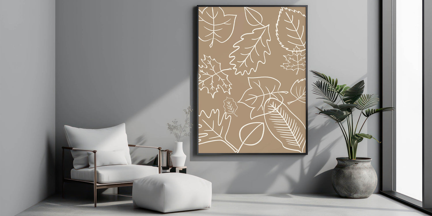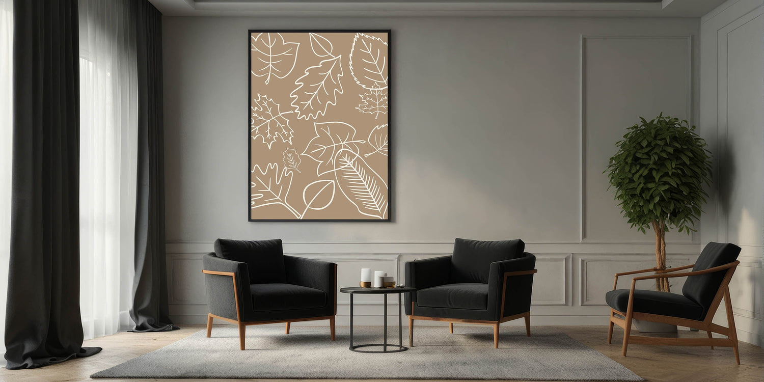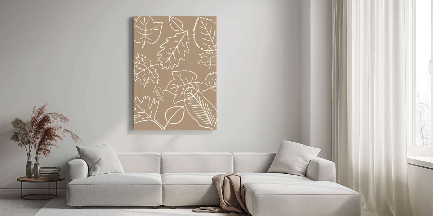 Bring a touch of autumn elegance to your space with this Minimalist Fall Leaves Wall Art, featuring a modern line-art design of various seasonal leaves. The soft beige outlines on a warm brown background create a stylish and contemporary Autumn Canvas Art piece, perfect for adding a subtle seasonal touch to any home or office. Whether you love nature-inspired art or prefer a minimalist aesthetic, this Fall Wall Decor seamlessly blends into any interior style.