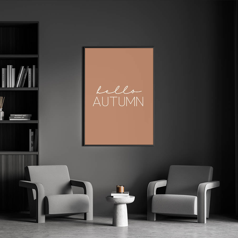 Minimalist Hello Autumn Wall Art - Fall Canvas Art for Cozy Decor