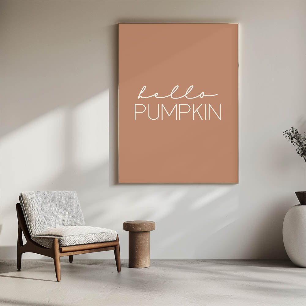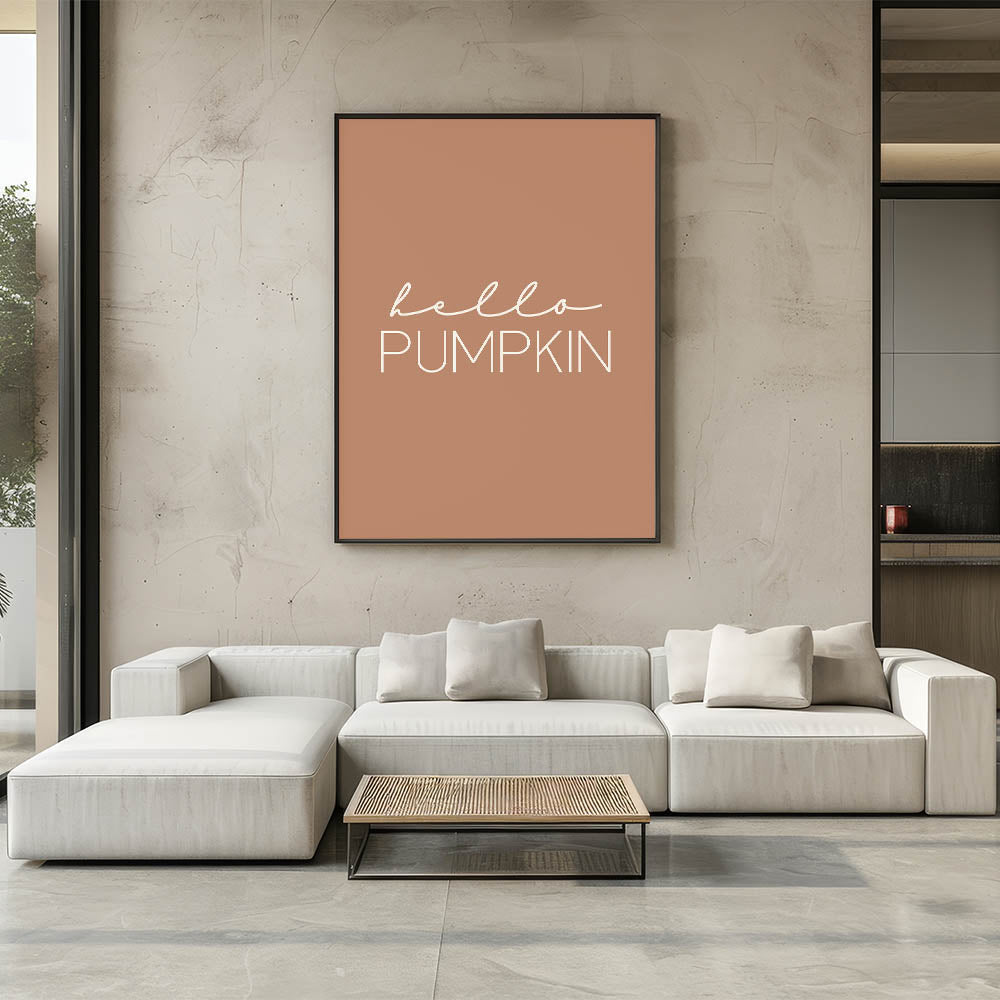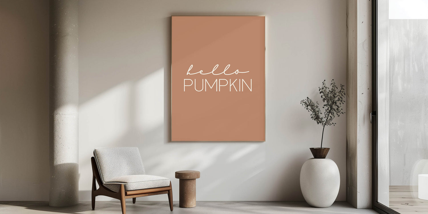 Minimalist Hello Pumpkin Wall Art - Fall Canvas Art for Cozy Decor