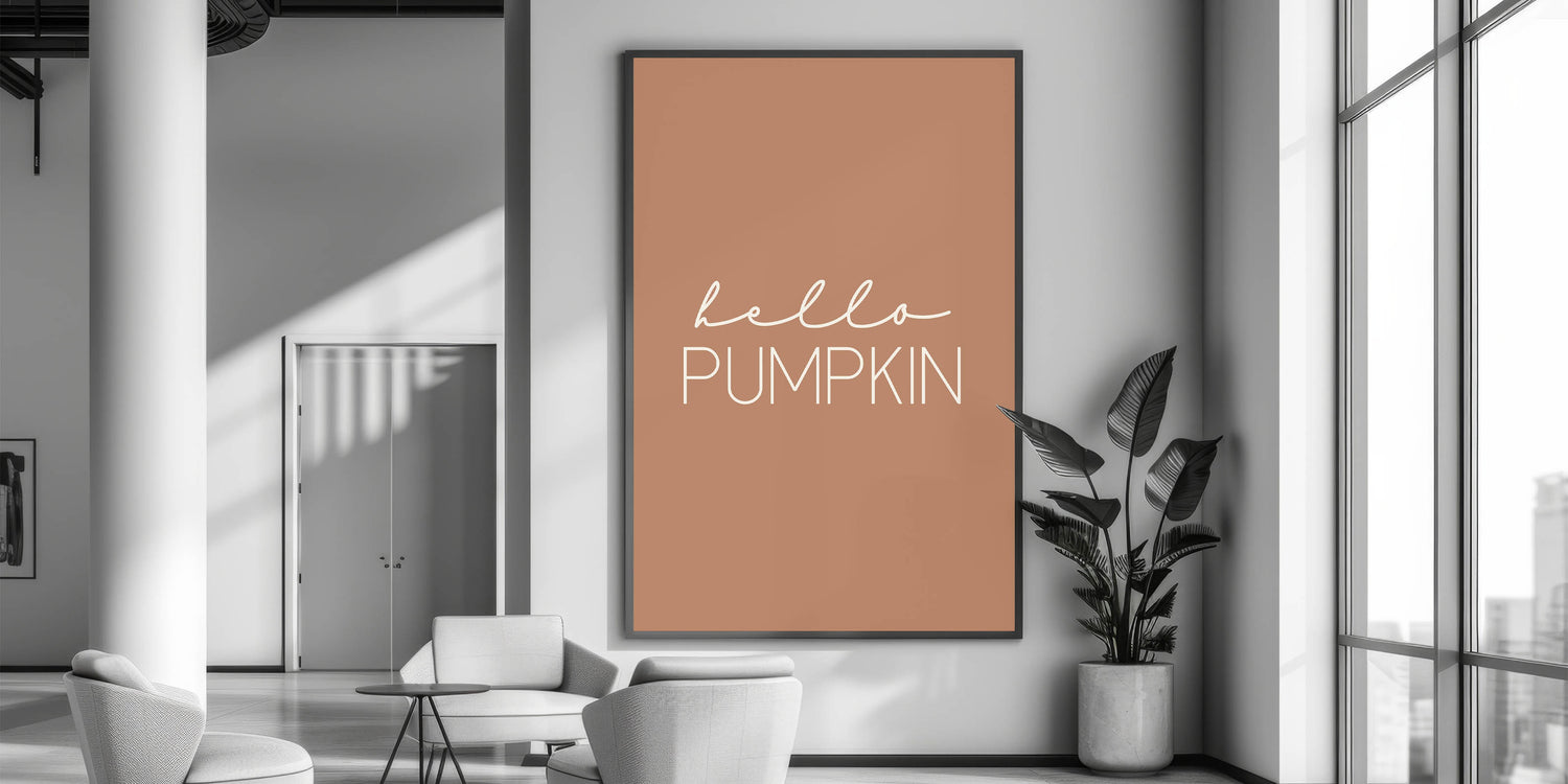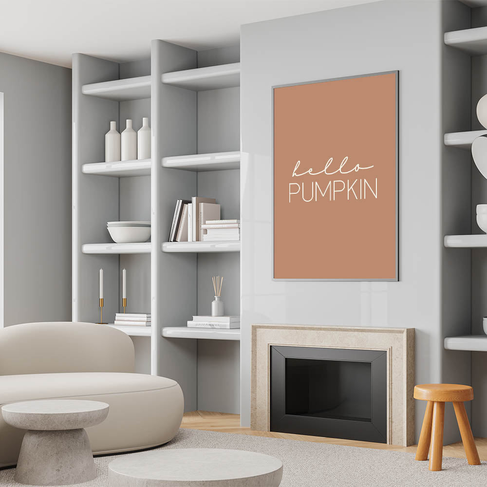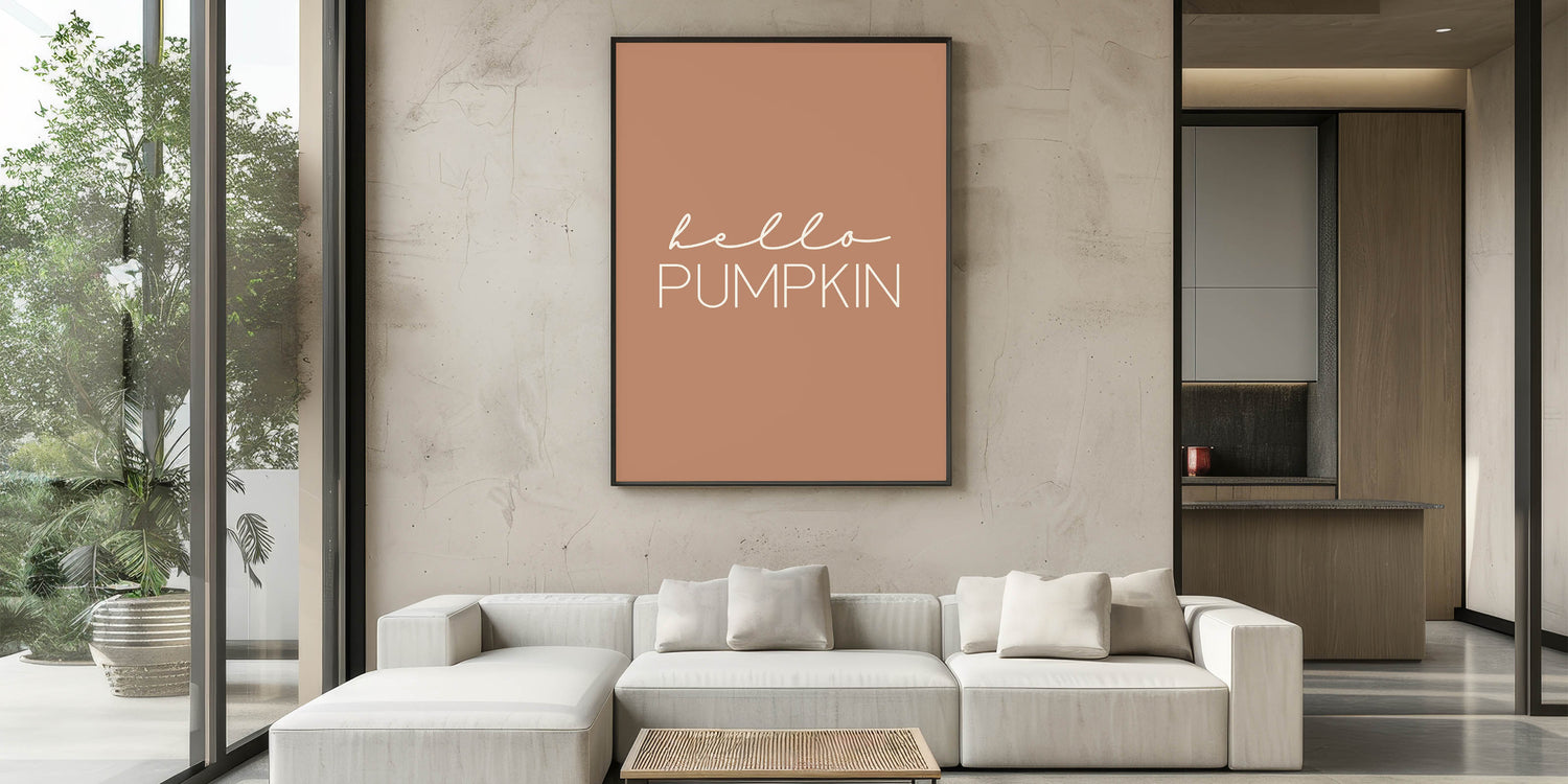 Minimalist Hello Pumpkin Wall Art - Fall Canvas Art for Cozy Decor