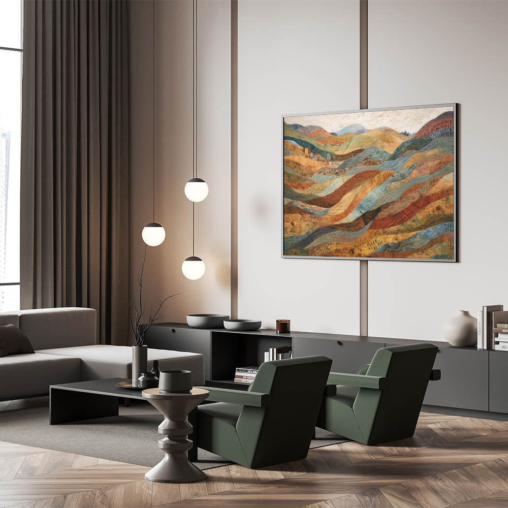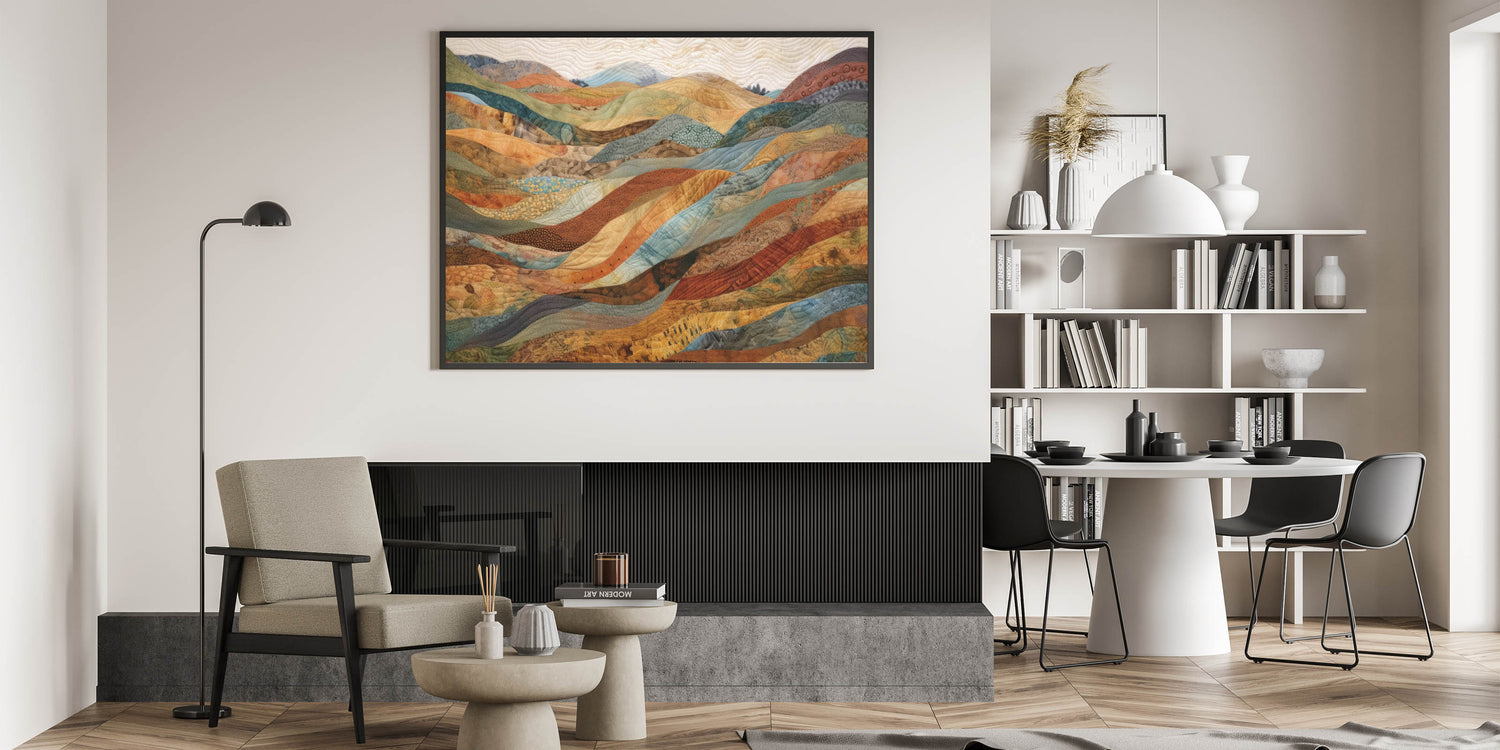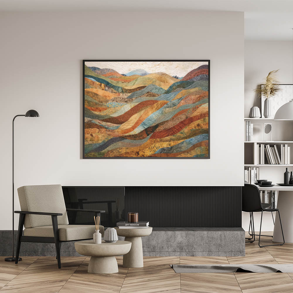 Quilted Autumn Hills Wall Art - Warm Fall Landscape Decor for Home