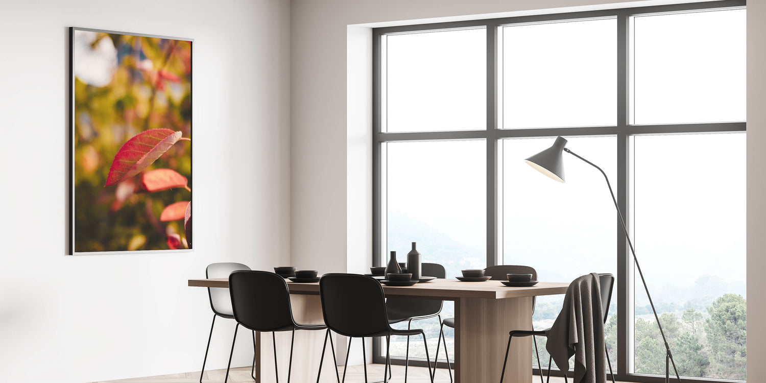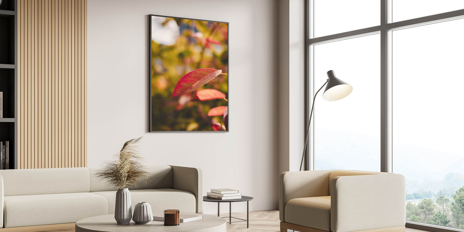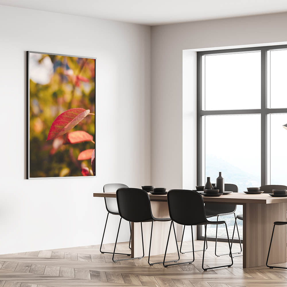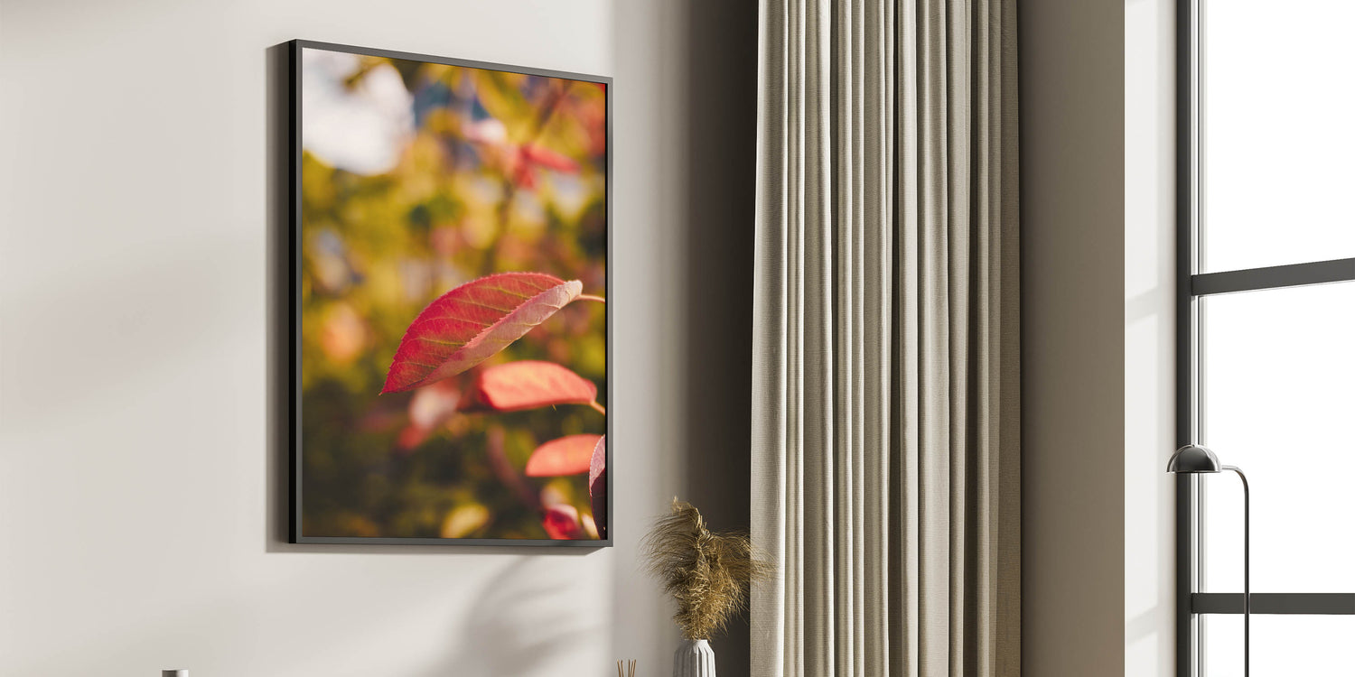 Red Autumn Leaf Close-Up – Fall Wall Art for Elegant Interiors