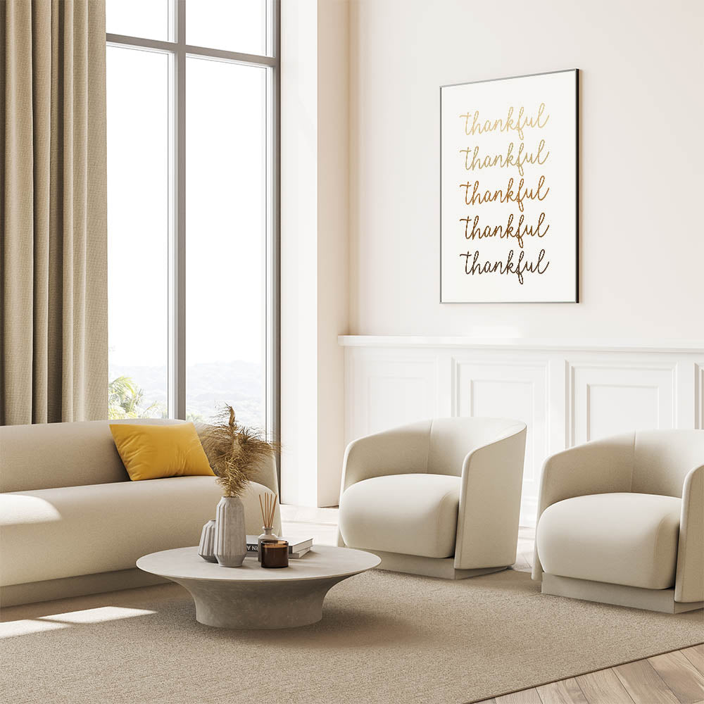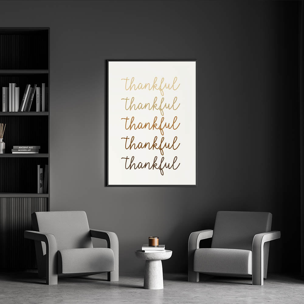 Embrace the season of gratitude with this Thankful Typography Fall Wall Art, a beautifully minimalist design that reflects the warmth of autumn. Featuring the word Thankful repeated in elegant script with a soft beige-to-brown gradient, this artwork is perfect for adding a meaningful touch to your fall home decor.