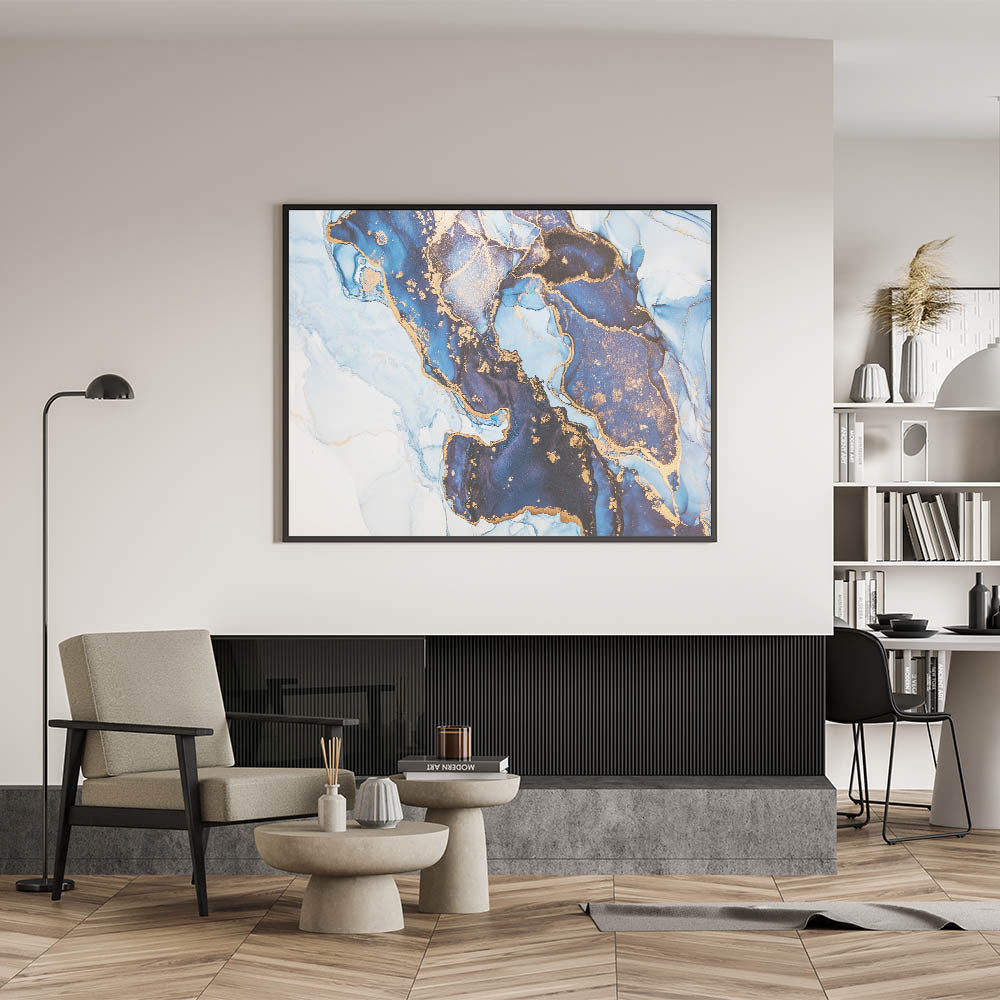 Immerse yourself in the beauty of this upscale abstract art collection piece, a high-end abstract canvas print featuring a striking mix of royal blue, sky blue, and shimmering gold. This dynamic design creates a luxurious and artistic statement, perfect for modern and sophisticated interiors. Whether you're curating a premium abstract art piece for your home, office, or gallery, this artwork radiates elegance and exclusivity.