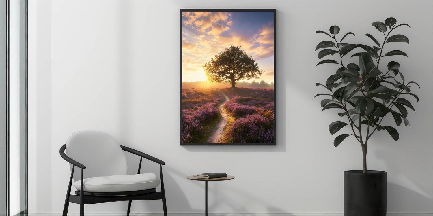 - Premium materials: Available as stretched canvas, framed art, acrylic glass, and rolled prints.