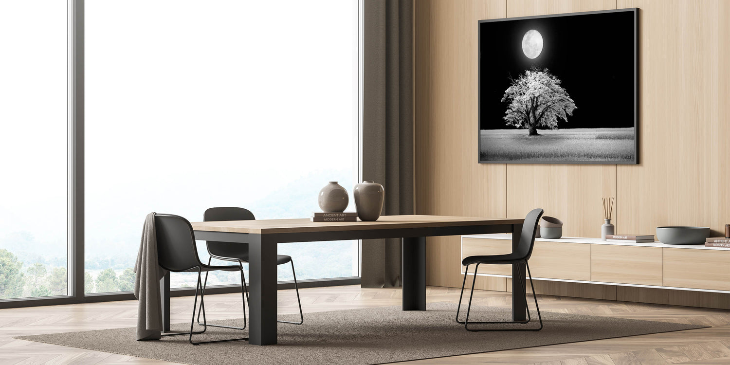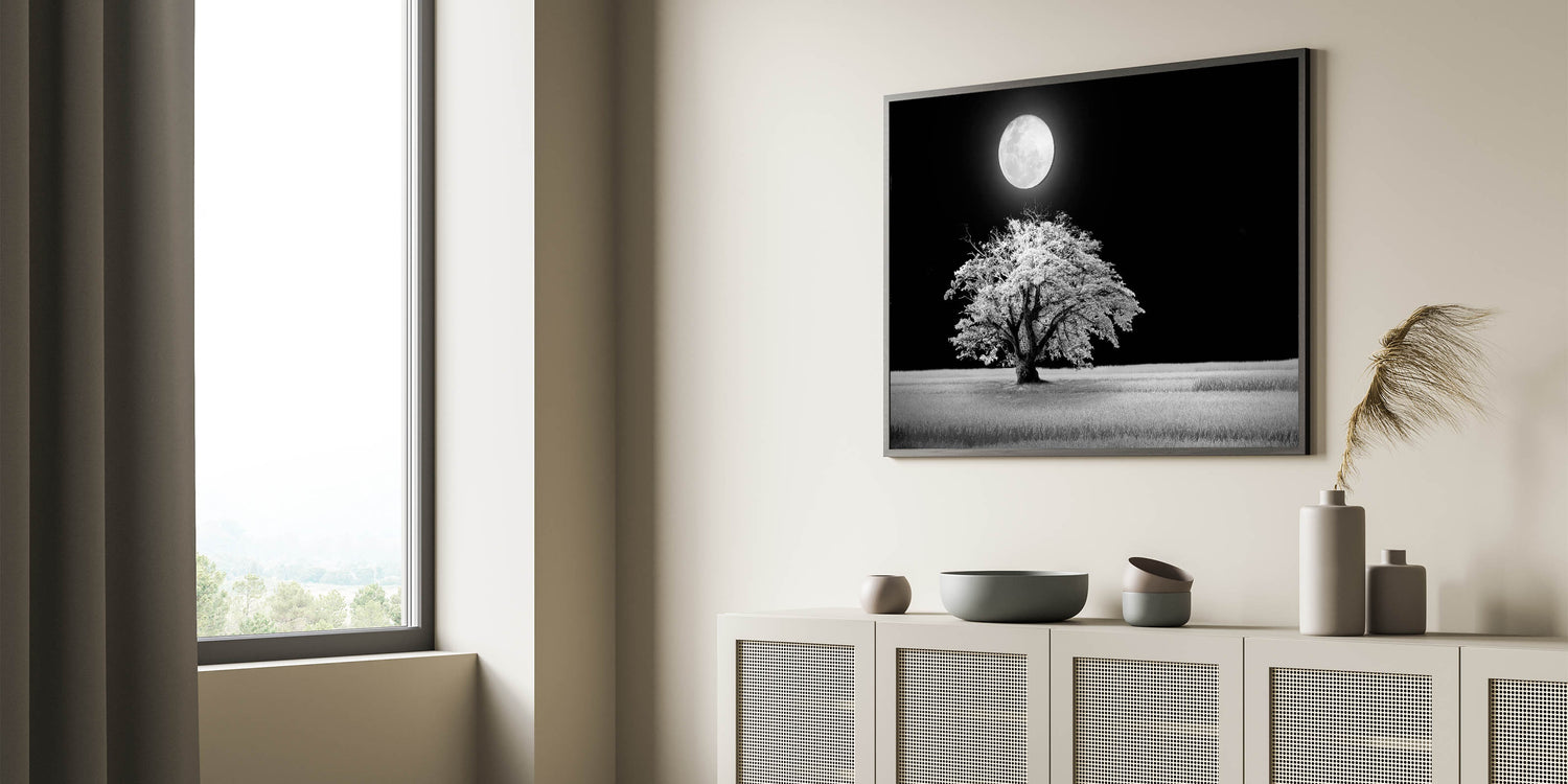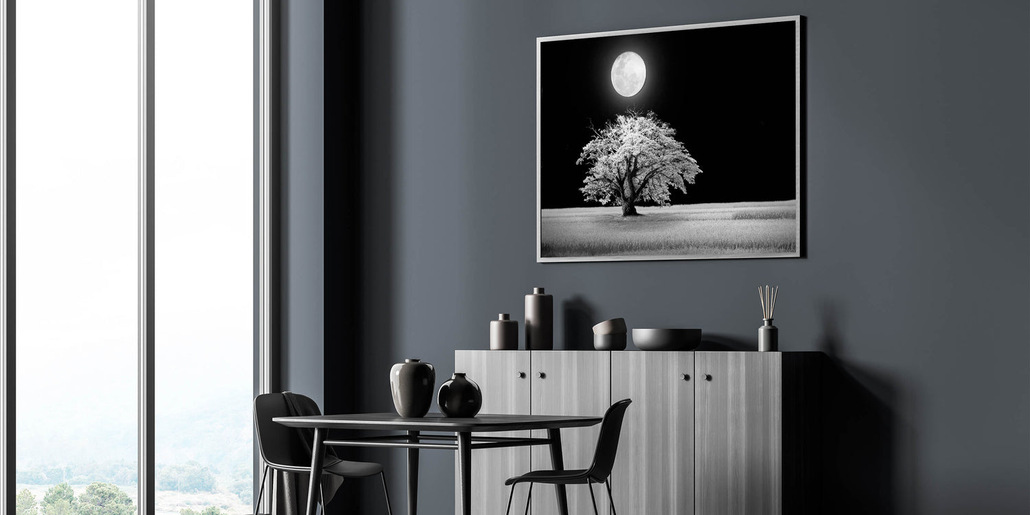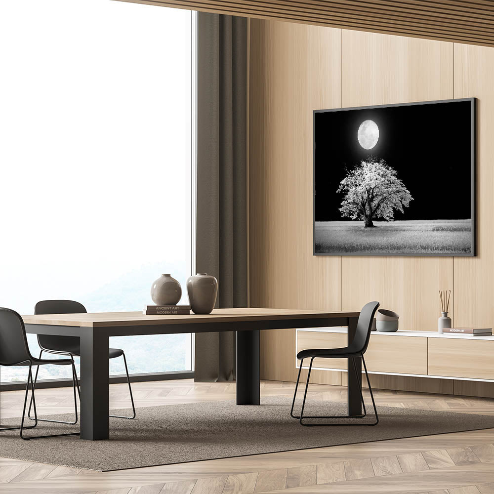 - High-definition printing captures the intricate details of the tree and the subtle textures of the moonlit landscape.