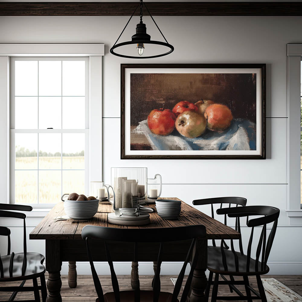 If you're looking for fruit art prints, fruit poster art, or a classical still life painting, this apple fruit wall art will bring warmth and sophistication to any setting.
