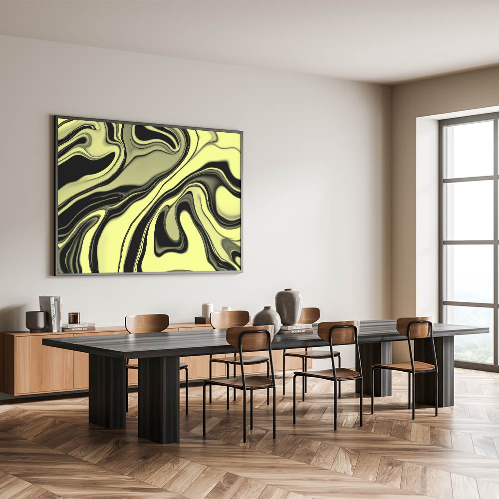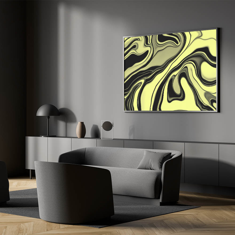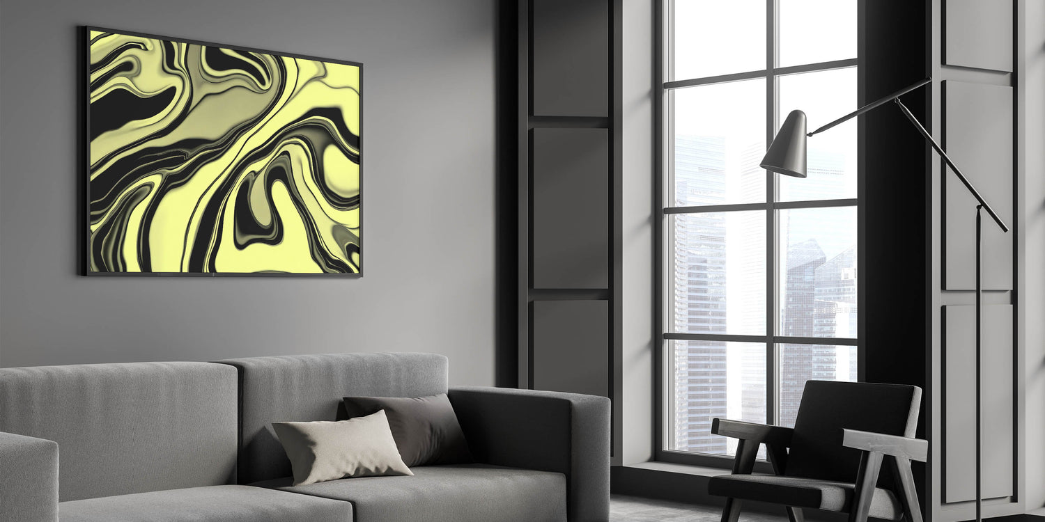 Infuse your walls with energy using this bold abstract wall art from our High-Contrast Abstracts collection. This fluid, marbled design swirls lime green and black into a hypnotic, glossy pattern that feels both organic and modern. Its bold color contrast and dynamic motion make it a standout in any room.