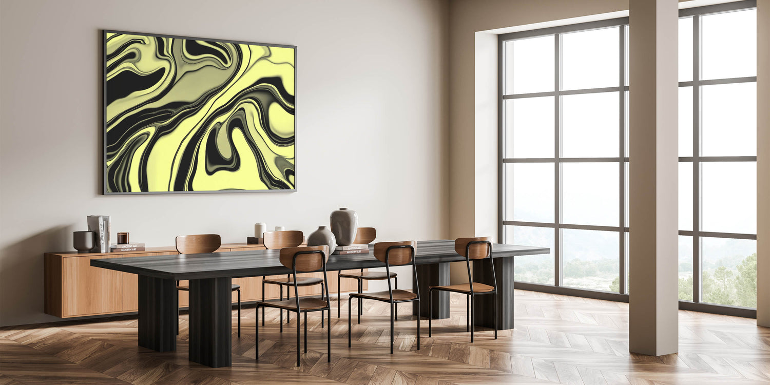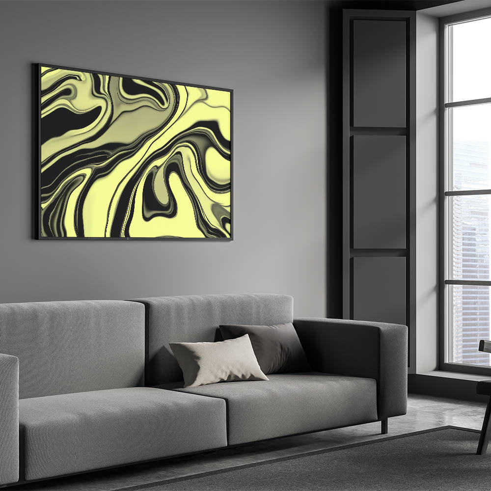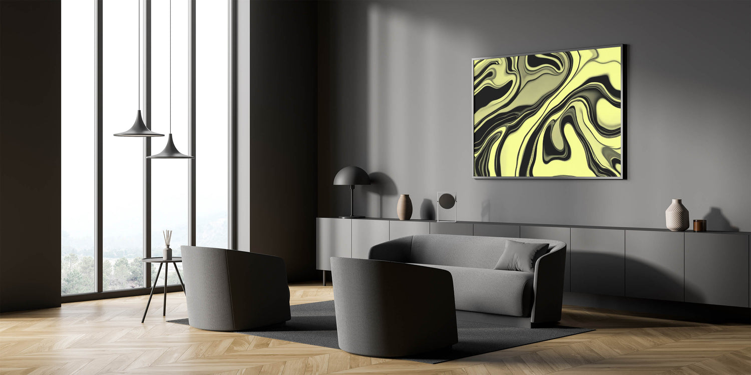 Infuse your walls with energy using this bold abstract wall art from our High-Contrast Abstracts collection. This fluid, marbled design swirls lime green and black into a hypnotic, glossy pattern that feels both organic and modern. Its bold color contrast and dynamic motion make it a standout in any room.