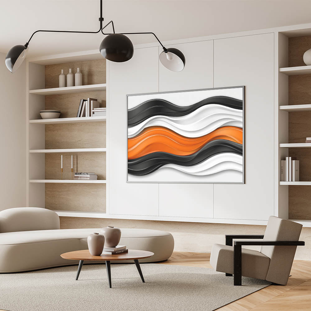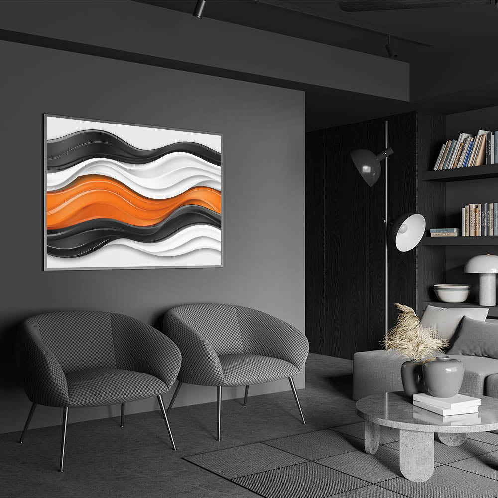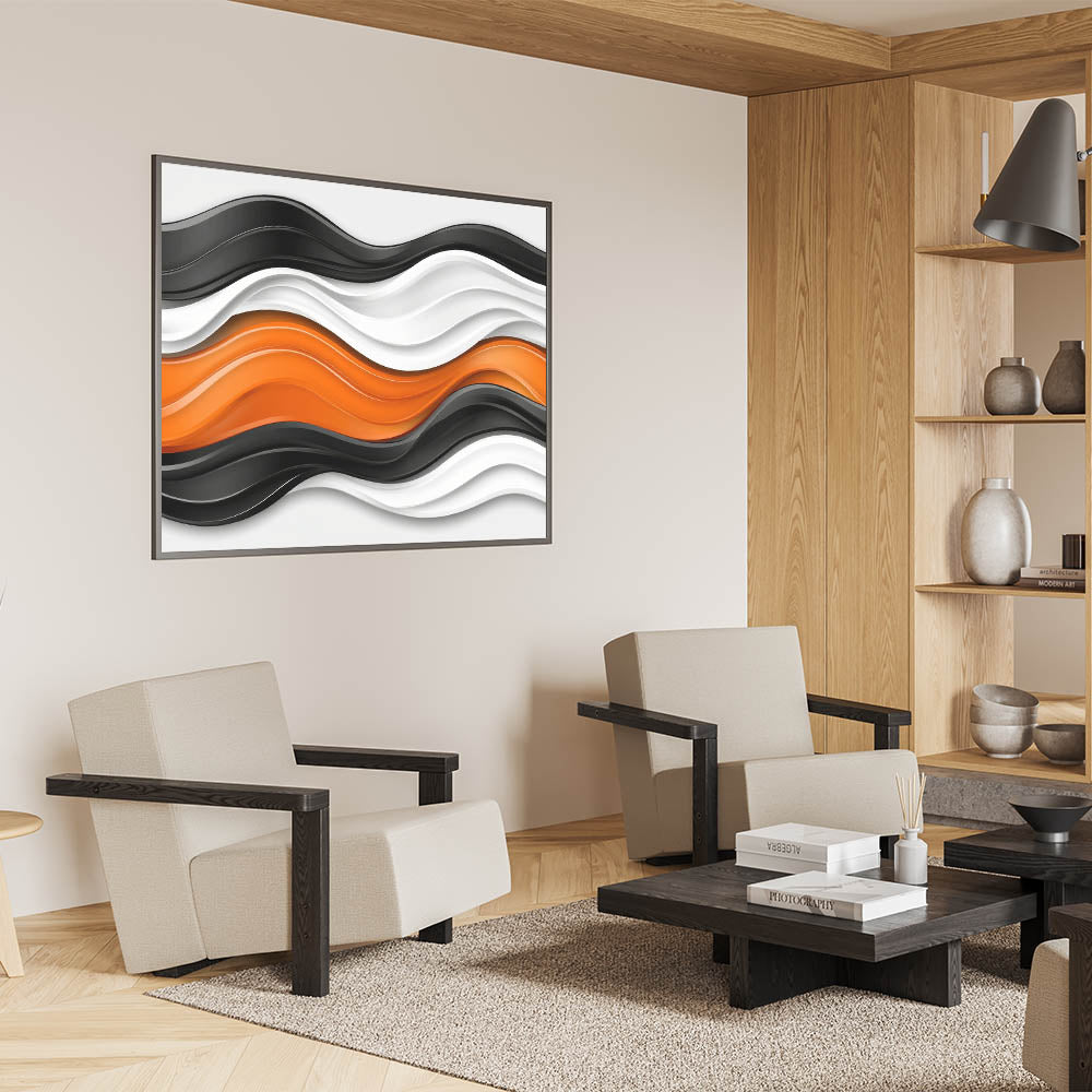 Contemporary Abstract Art Pieces – Orange, Black & White Waves