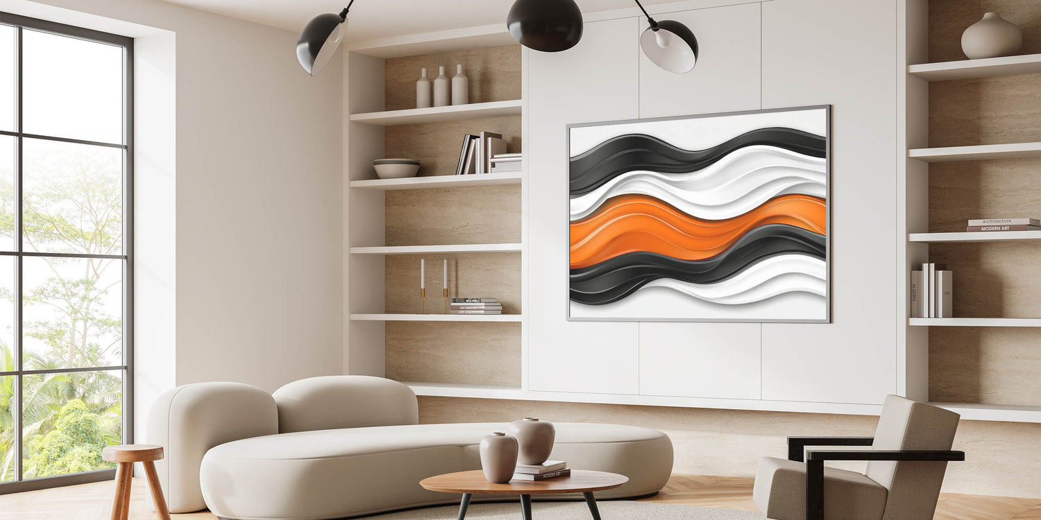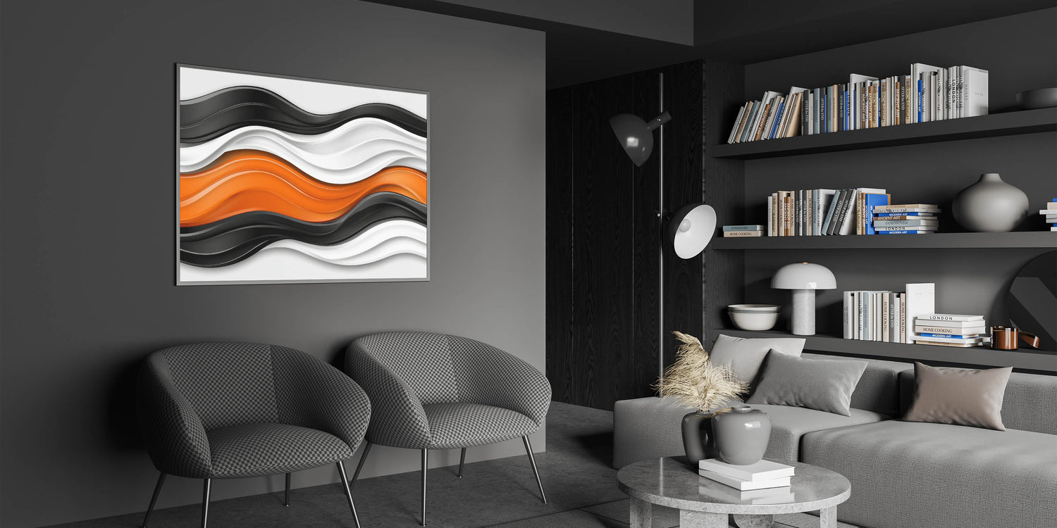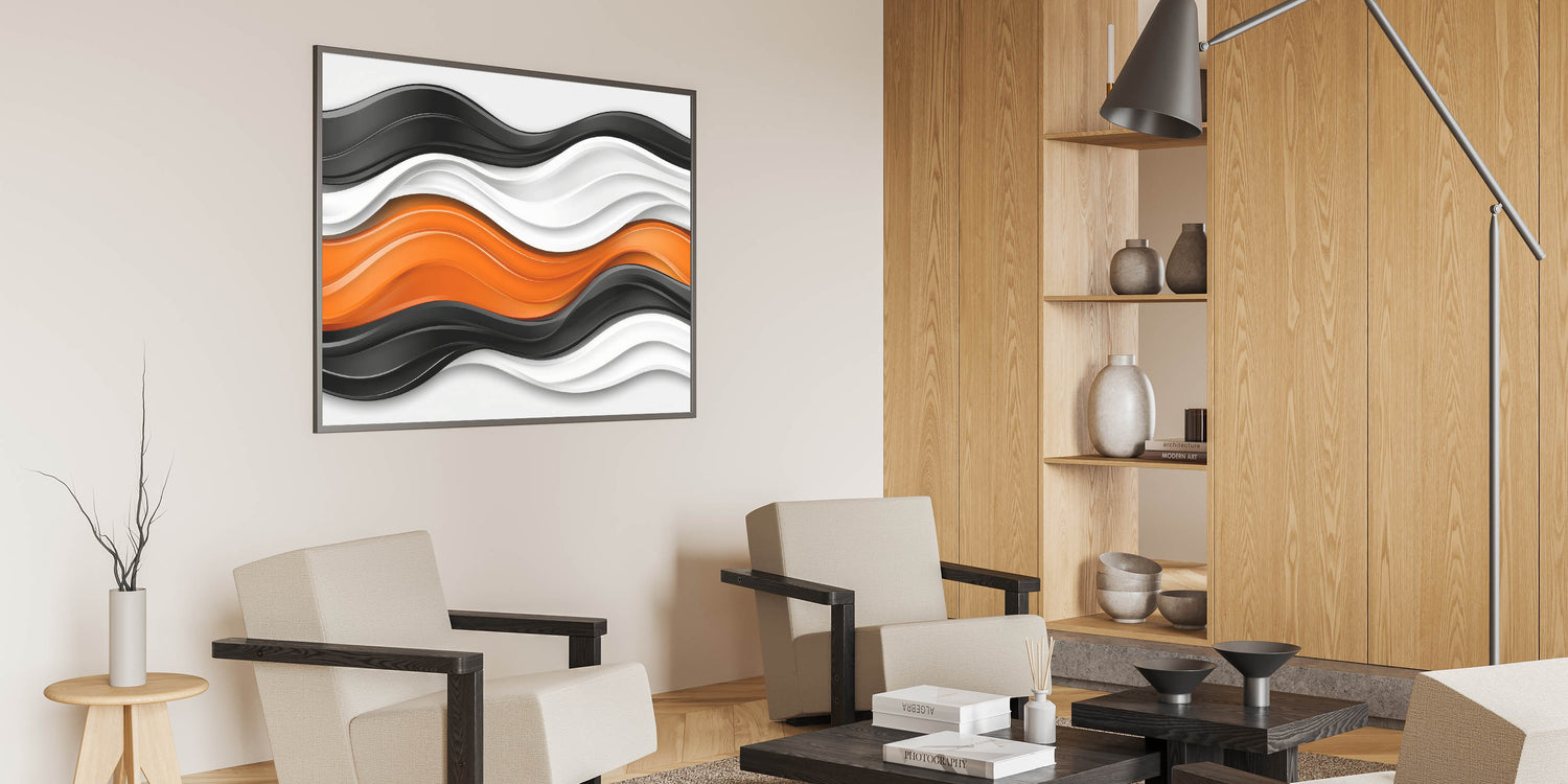 Contemporary Abstract Art Pieces – Orange, Black & White Waves