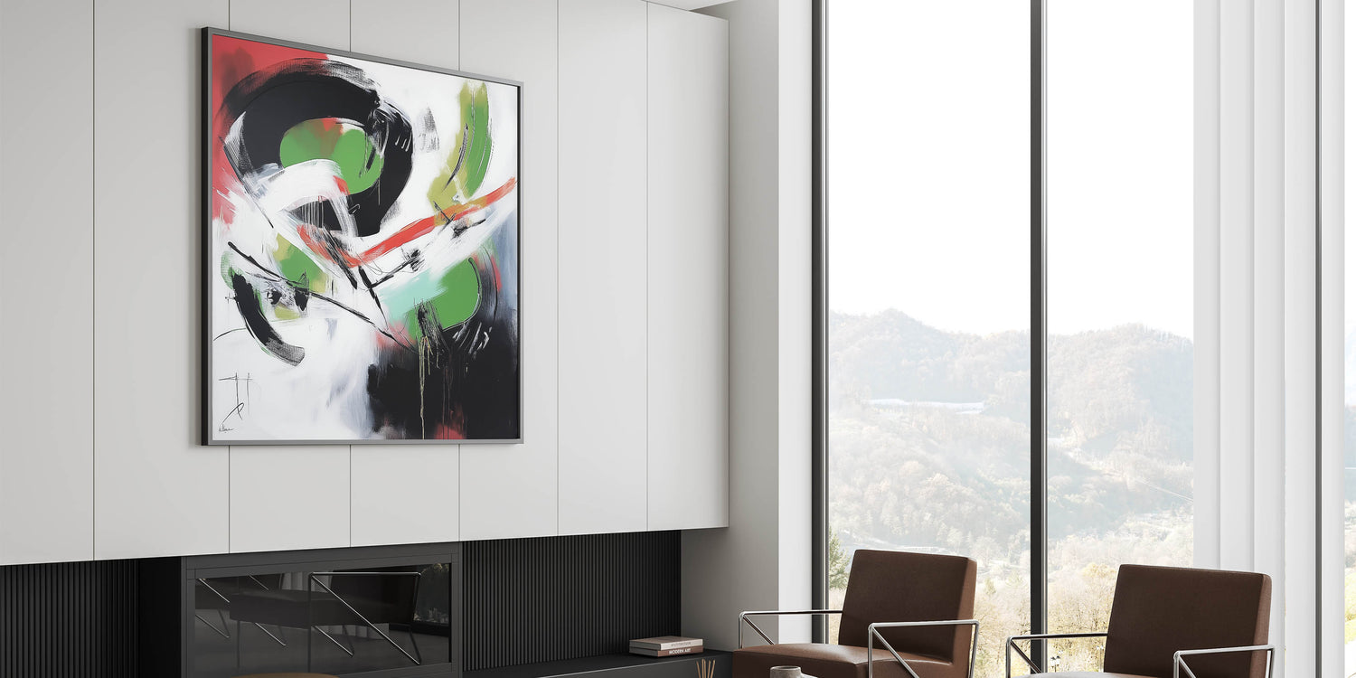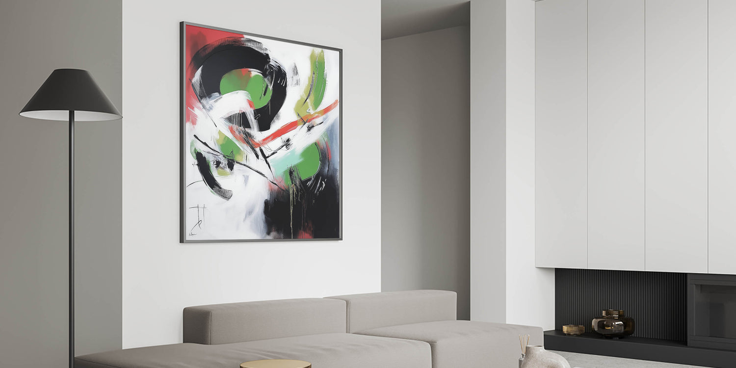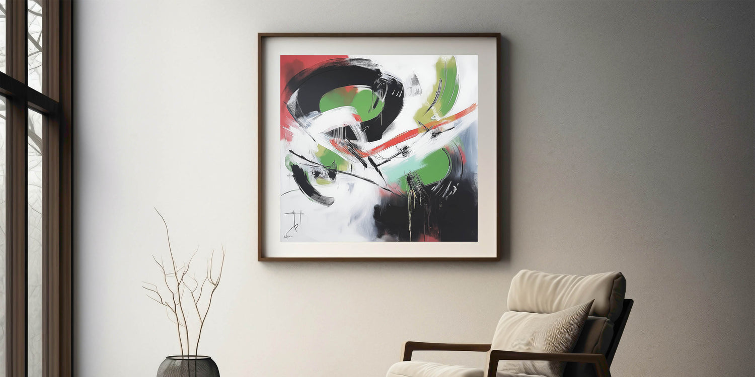 Infuse your space with bold energy and modern flair through this striking contemporary abstract canvas. Featuring a dynamic mix of black, vibrant green, white, and crimson red, this expressive design exudes motion and contrast. Every brushstroke and curve brings rhythm and raw emotion, making it a powerful centerpiece in any contemporary interior.
