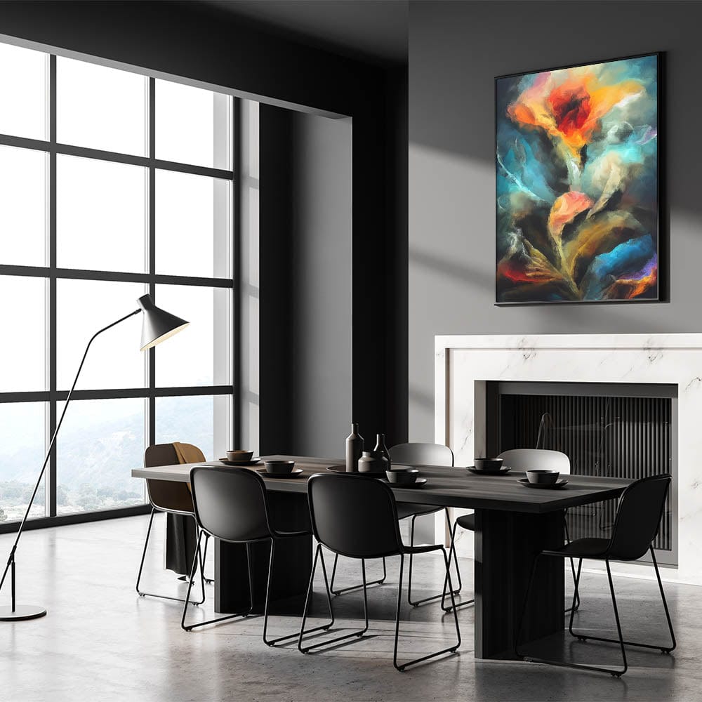 Infuse your interior with vibrant elegance through our Contemporary Fluid Art Pieces from the exclusive Fluid Abstract Art Collection. This abstract fluid canvas art captures a radiant harmony of fiery oranges, deep reds, soft teal, and soothing blue shades, delivering a dynamic visual experience.