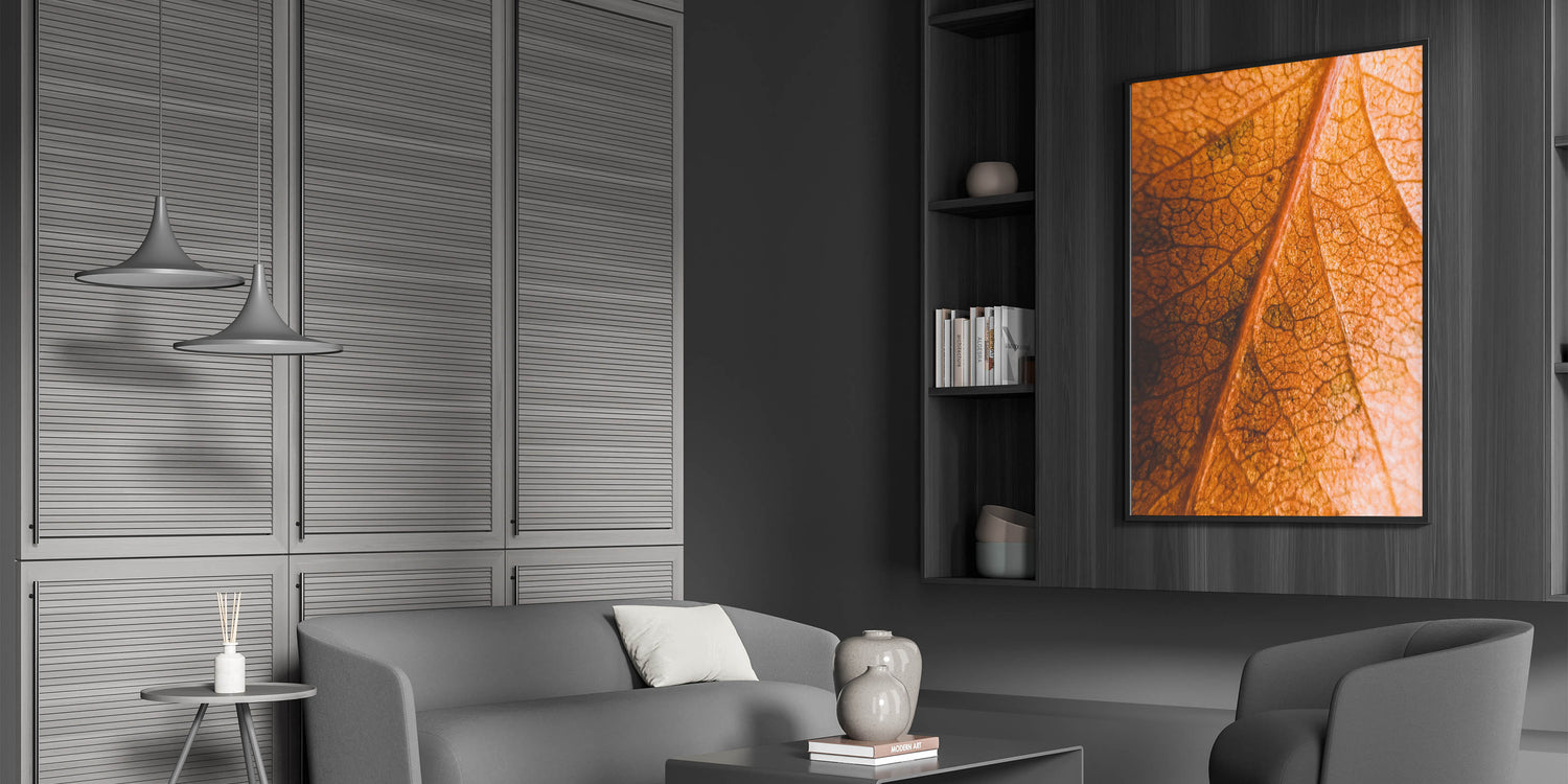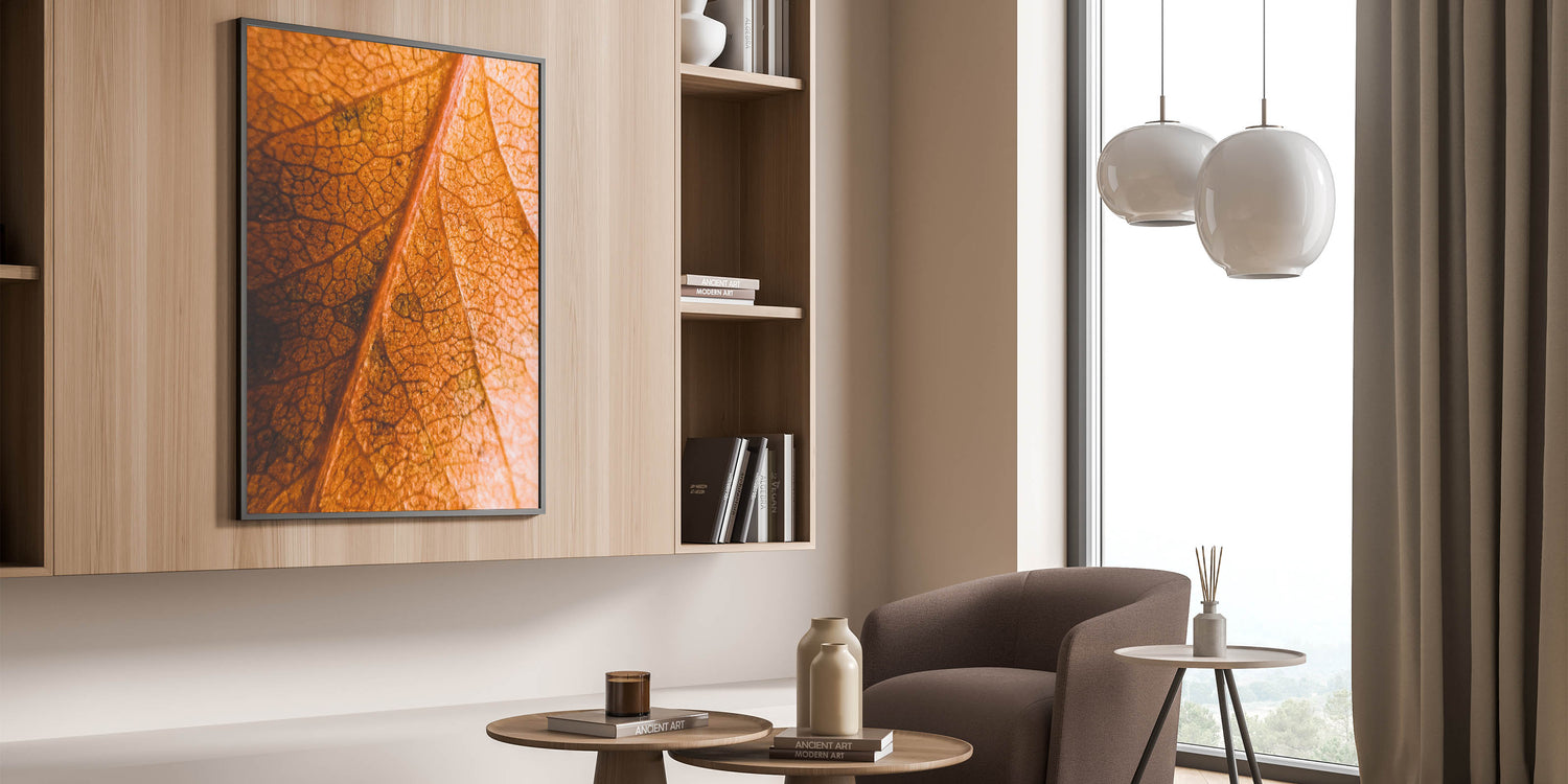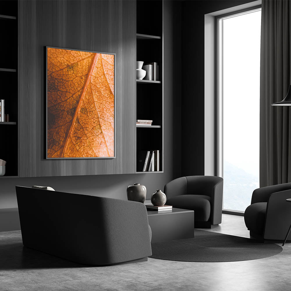 Celebrate the intricate beauty of fall with this fall art print, featuring a close-up view of a textured autumn leaf. The fine details of its veins and the rich orange and brown hues create a mesmerizing composition, making this autumn canvas art a perfect addition to nature-inspired decor. Whether you’re a fan of seasonal aesthetics or simply appreciate the delicate details of nature, this fall wall decor adds warmth and depth to any space.