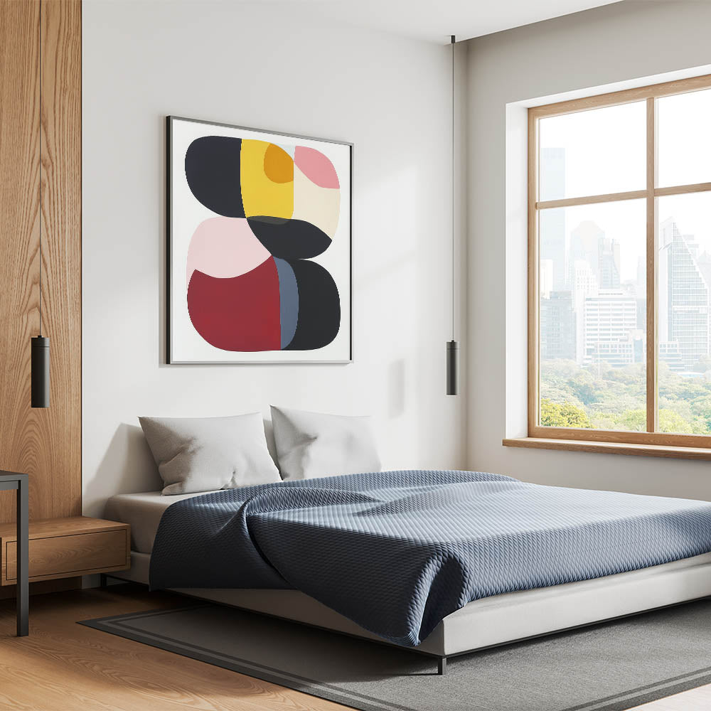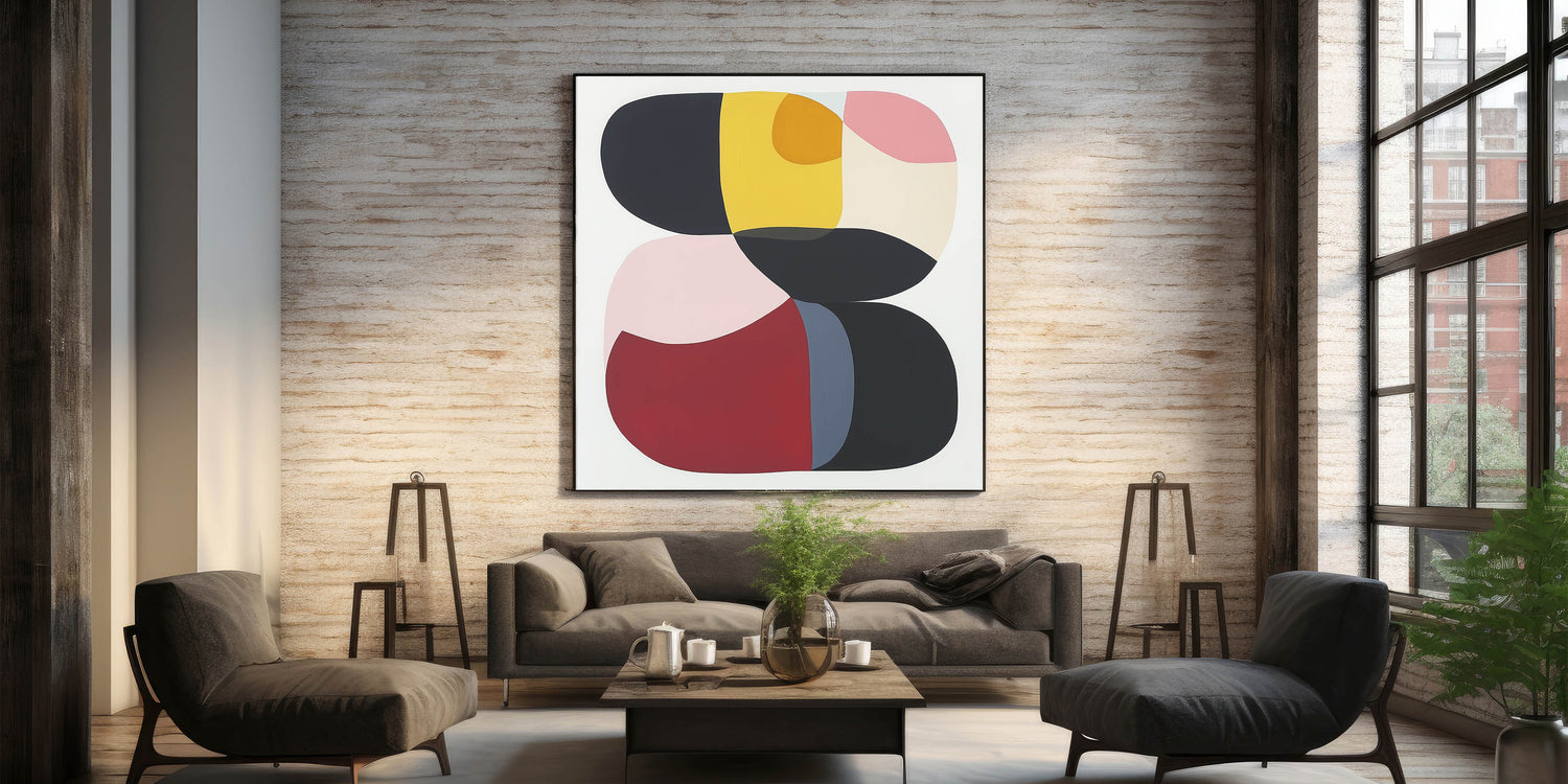 This contemporary abstract canvas balances powerful color blocking with organic shape and rhythm. Perfect for modern and eclectic interiors, it instantly adds energy, depth, and style to your room. Whether used as a focal point or paired in a creative layout, this large abstract wall art brings color and sophistication to your home or workspace.
