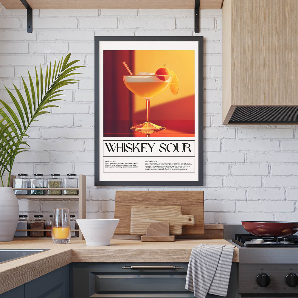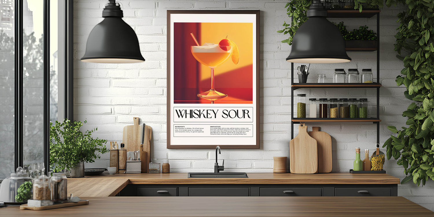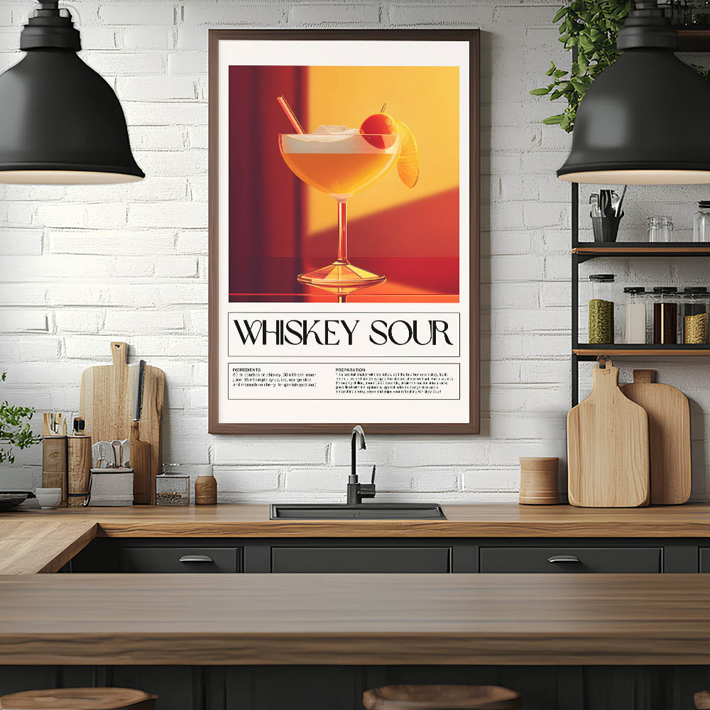 Whiskey Sour Cocktail Art - Bar Wall Art for Lounge & Kitchen