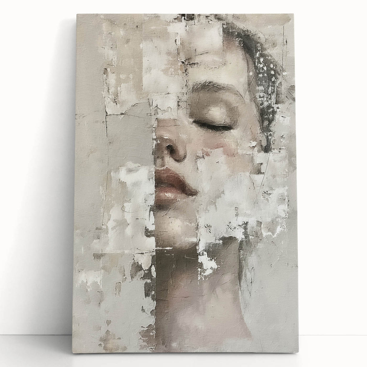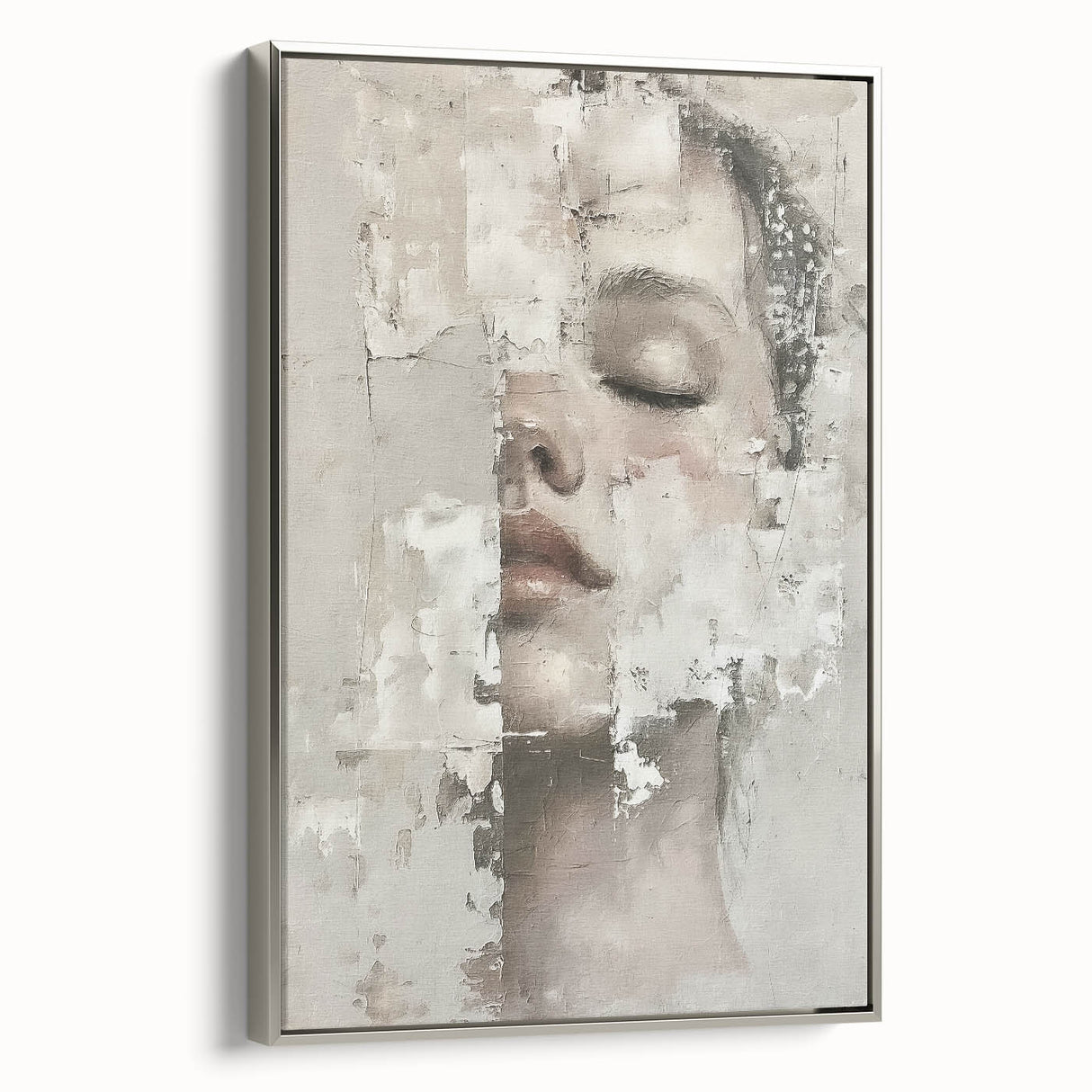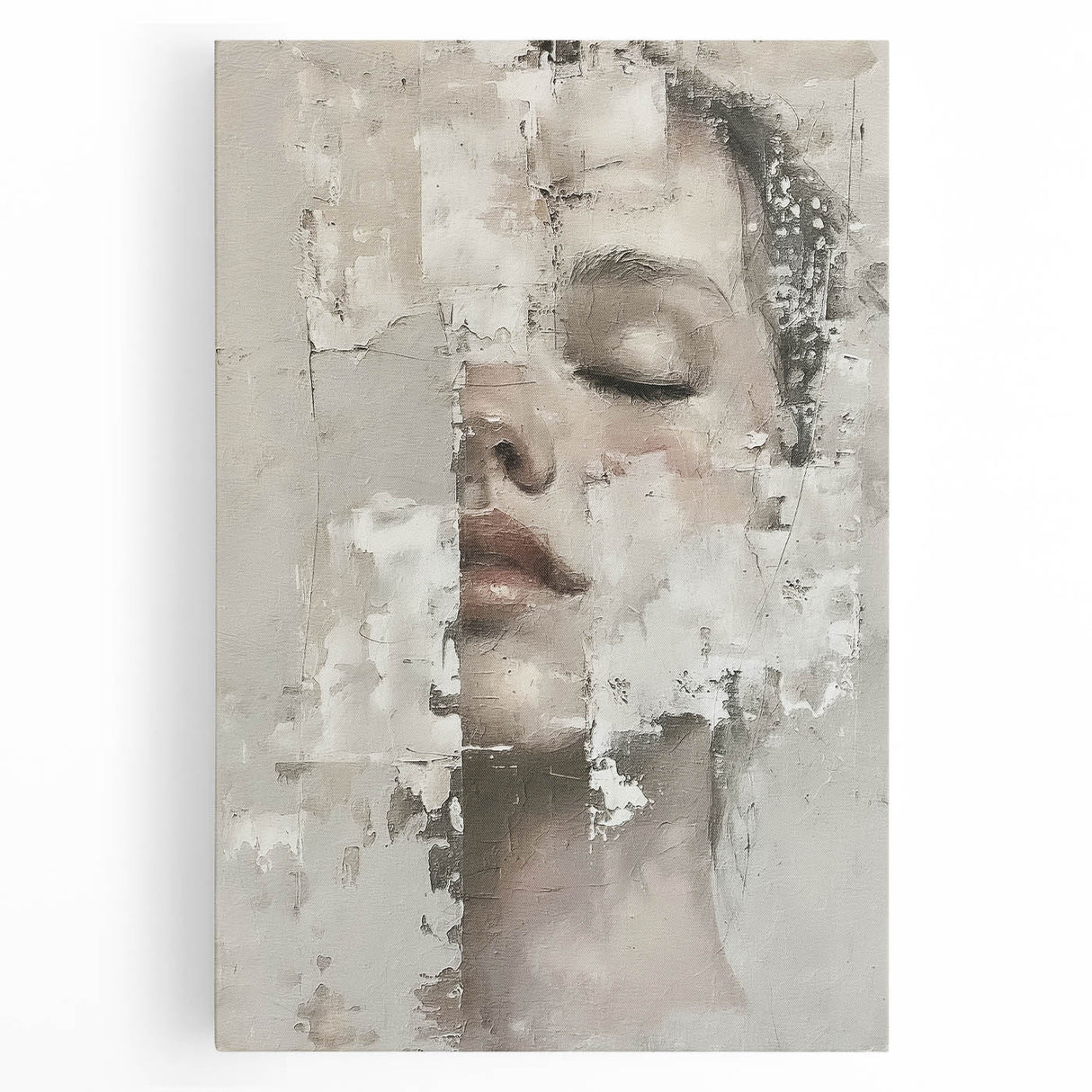 Discover the elegance of abstract human figures with this captivating wall art piece, blending modern aesthetics with timeless artistry. This artwork presents a serene, fragmented face in soft, neutral tones, evoking a sense of calm and introspection. Ideal for art lovers who admire contemporary figurative styles, this piece adds sophistication to any home or office decor.