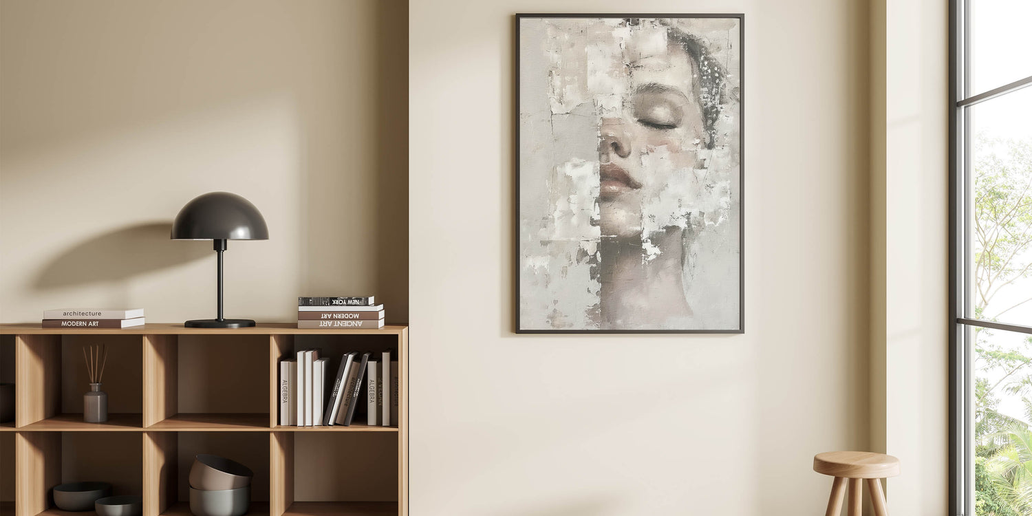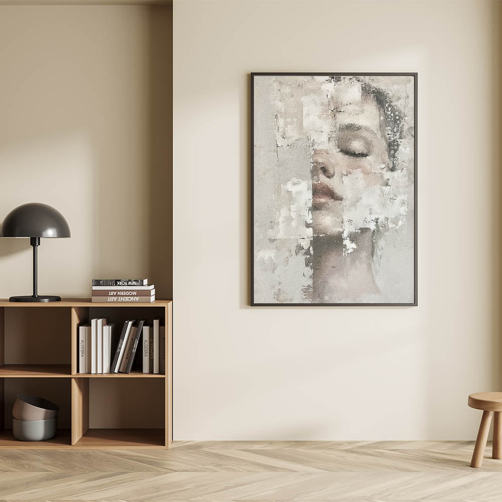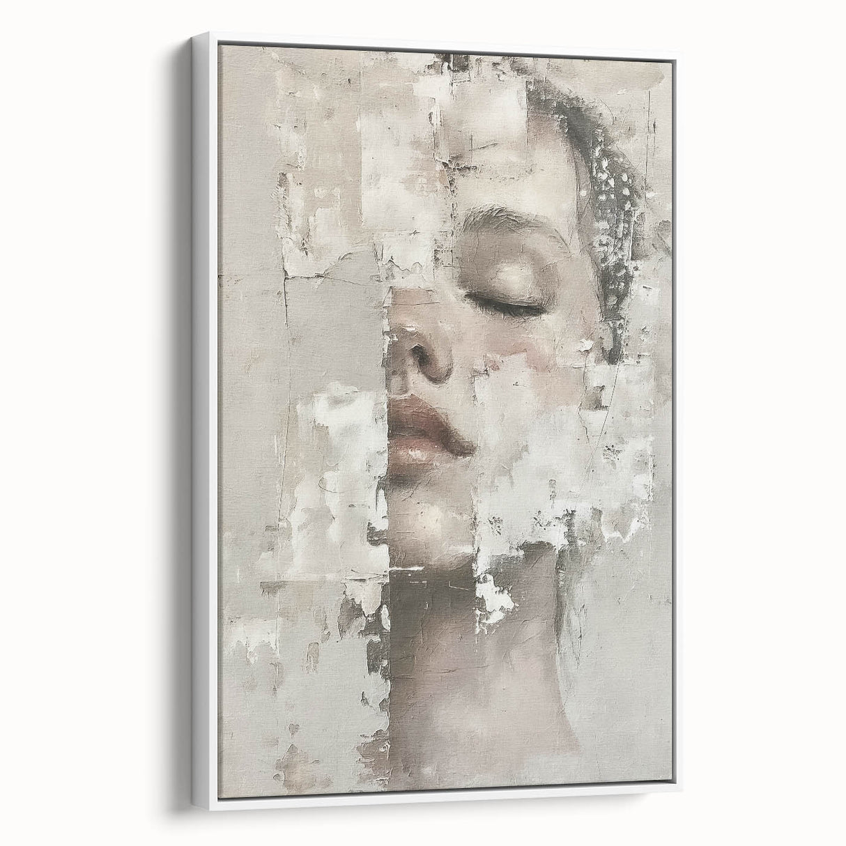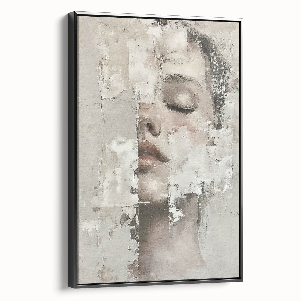 Discover the elegance of abstract human figures with this captivating wall art piece, blending modern aesthetics with timeless artistry. This artwork presents a serene, fragmented face in soft, neutral tones, evoking a sense of calm and introspection. Ideal for art lovers who admire contemporary figurative styles, this piece adds sophistication to any home or office decor.