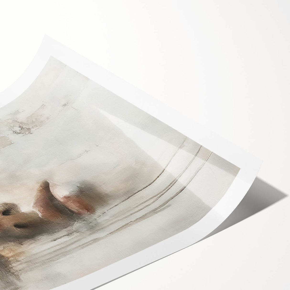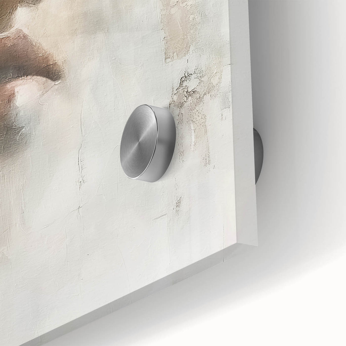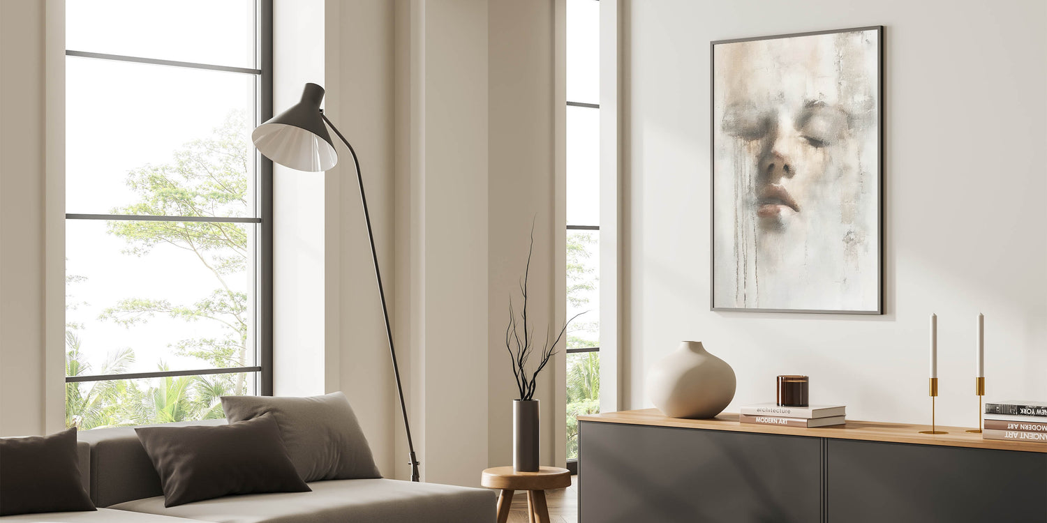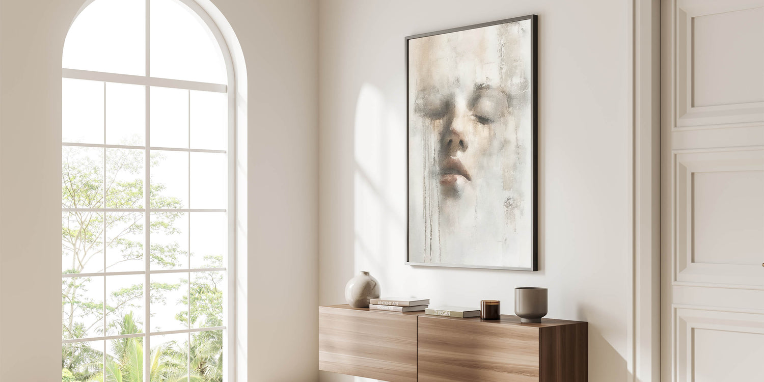 This dreamy abstract figurative canvas from our Abstracts collection brings a sense of calm and introspection to your decor. Featuring a serene face with closed eyes, softly blended in warm neutral tones, this artwork embodies tranquility and elegance. The delicate layering of cream, beige, and light gray tones adds depth, making it a refined choice for contemporary and minimalist interiors.