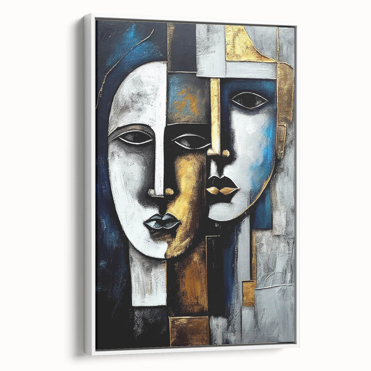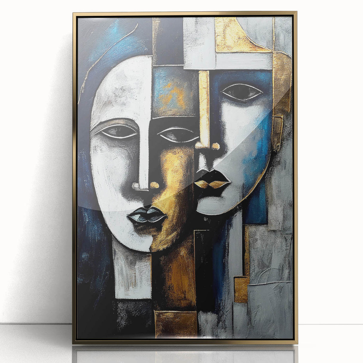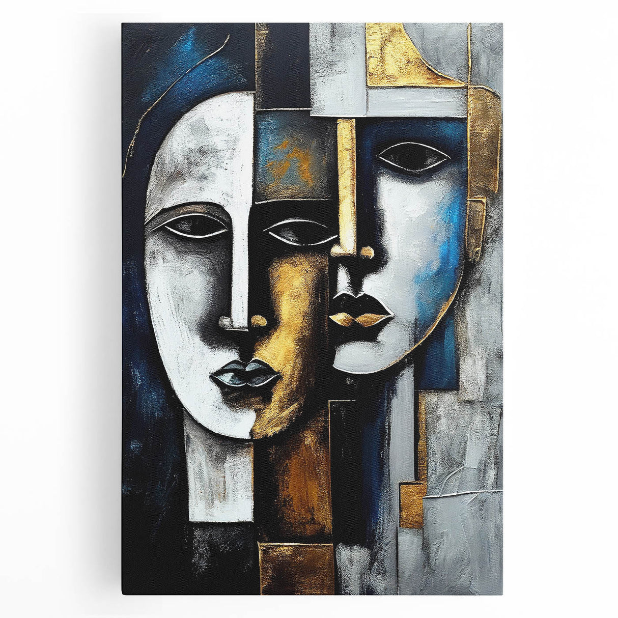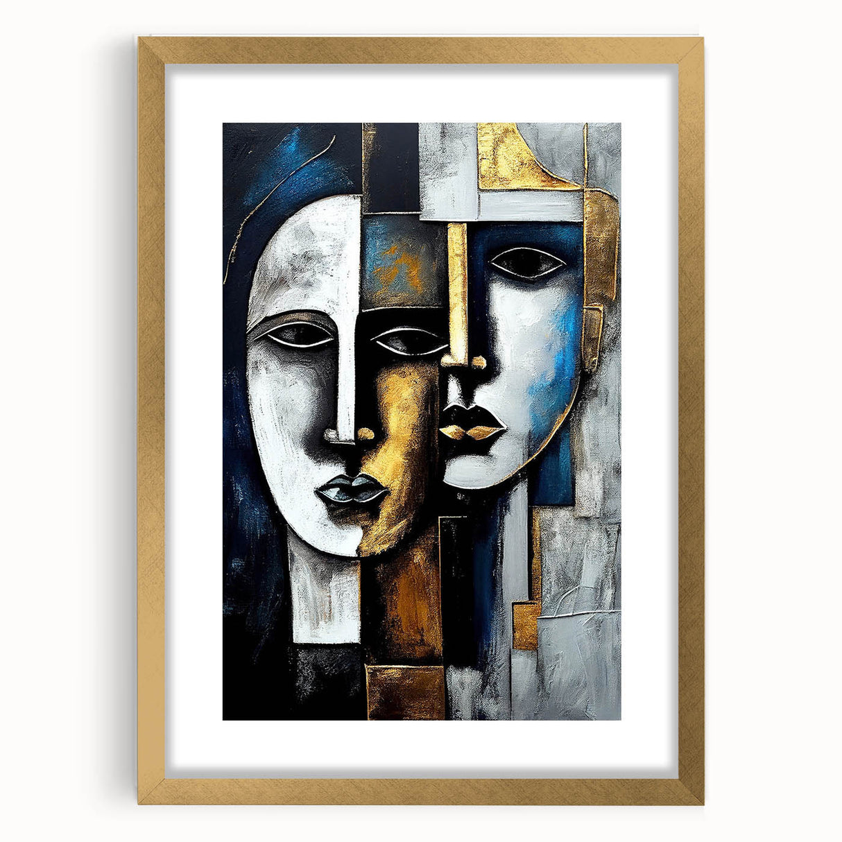 Dual Faces in Gold and Blue | Modern Geometric Figurative Wall Art