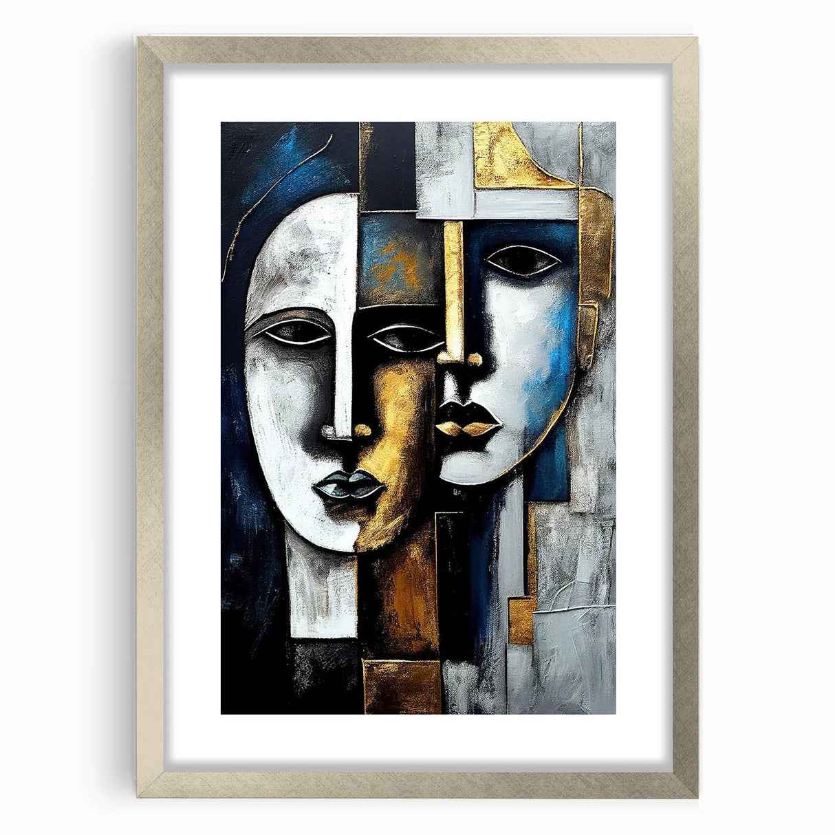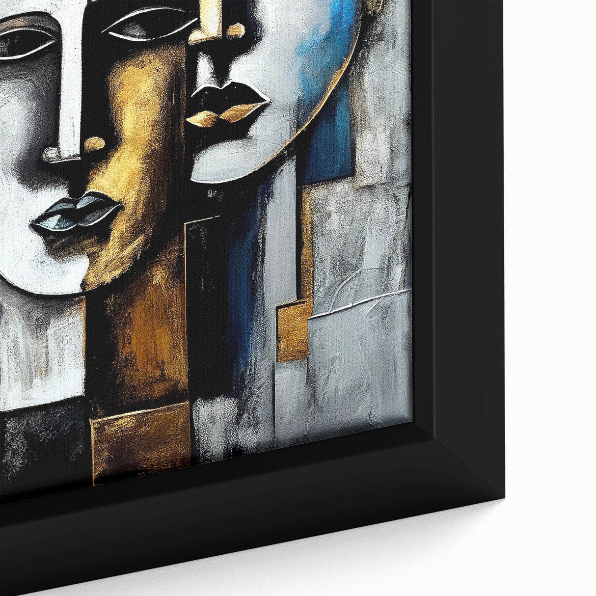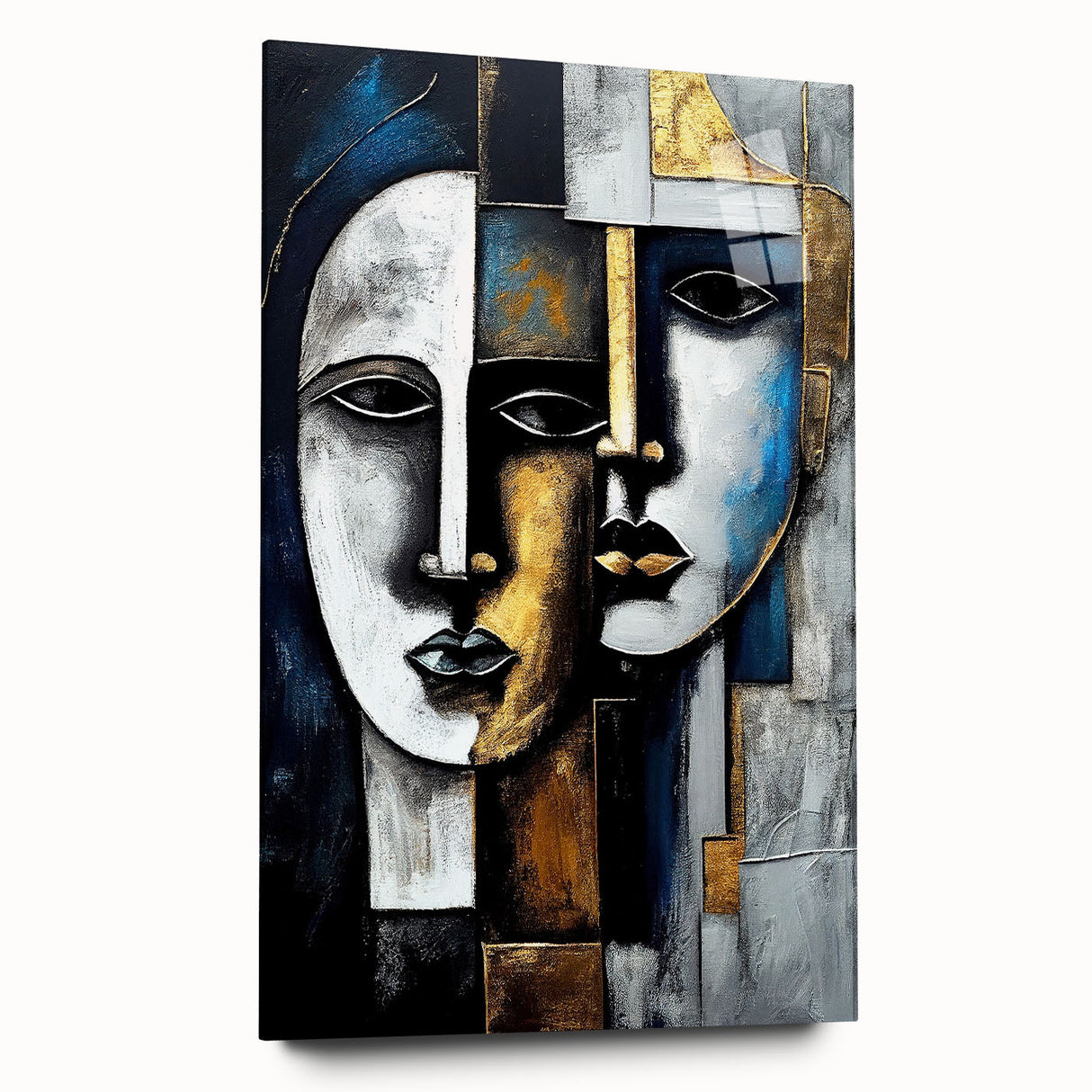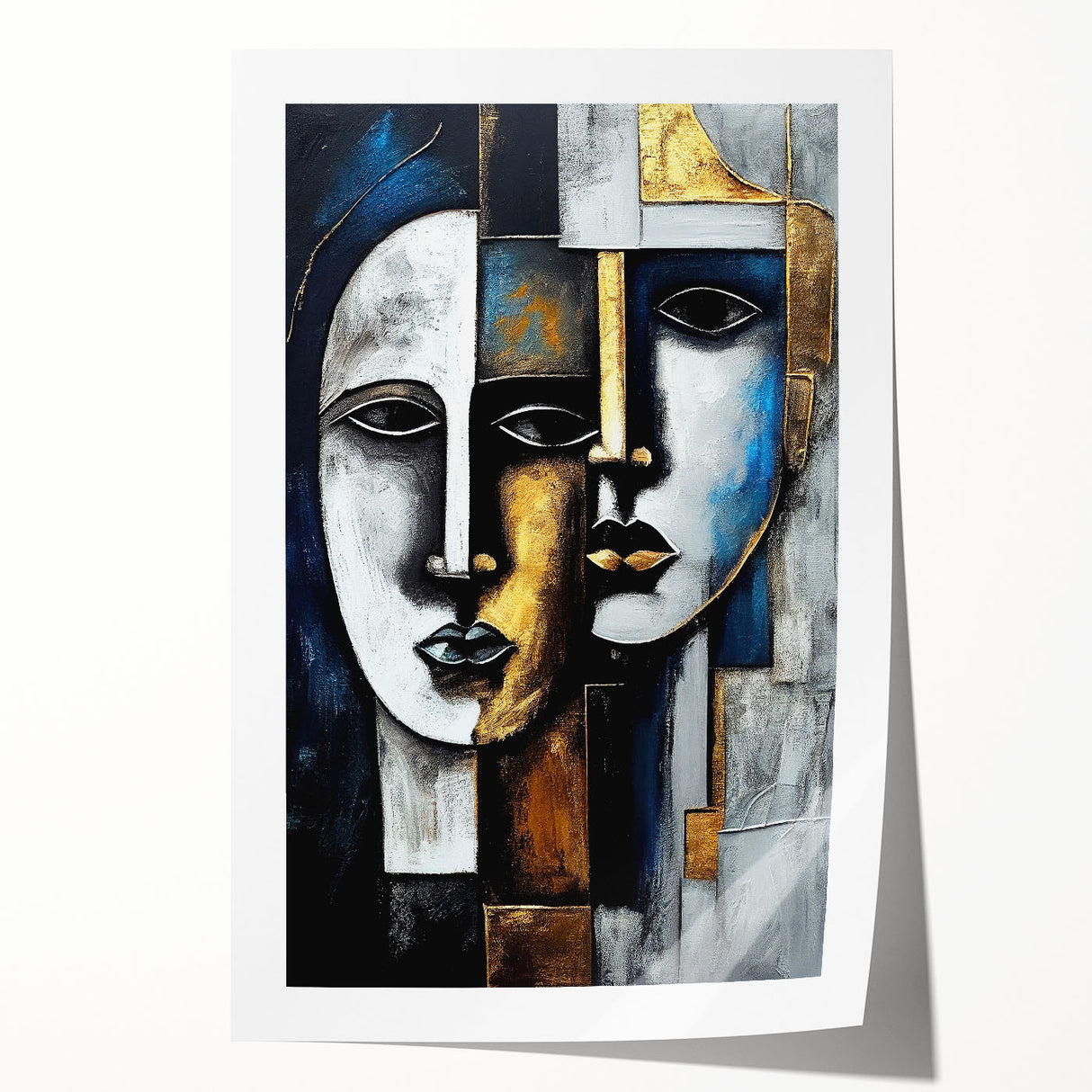 Dual Faces in Gold and Blue | Modern Geometric Figurative Wall Art