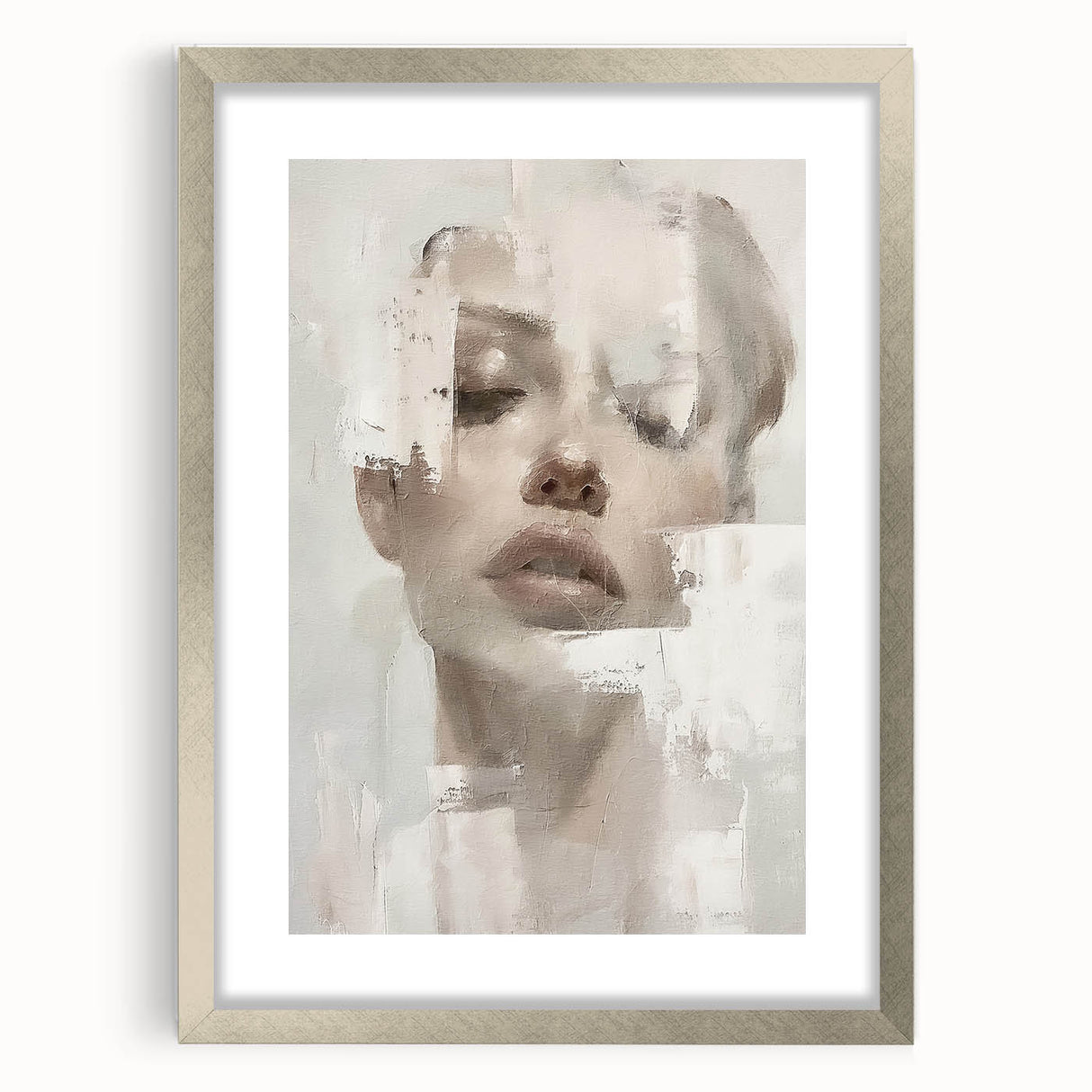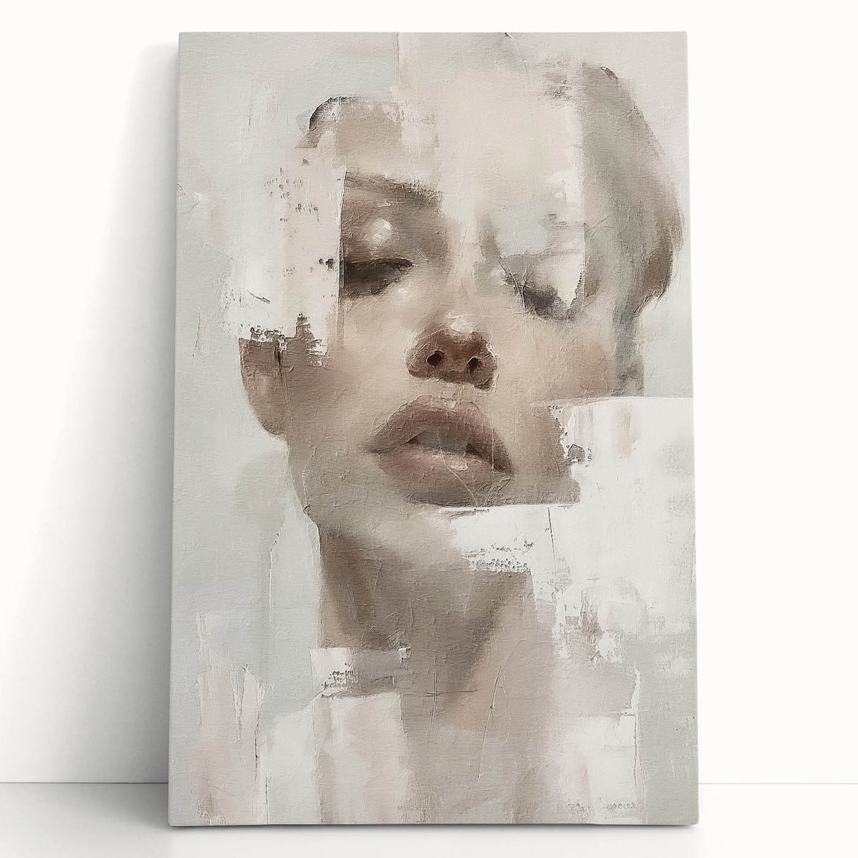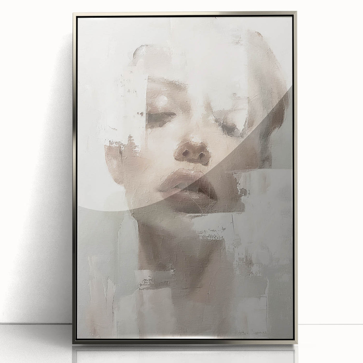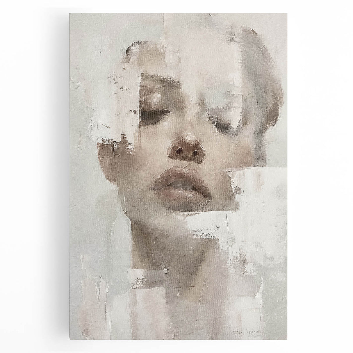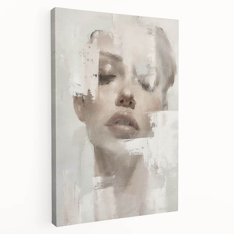 This elegant abstract figurative art piece offers a serene, sophisticated addition to any space. Featuring a softly textured portrait with delicate hues of cream, beige, and light gray, this artwork exudes a calm, minimalist aesthetic. The abstract portrayal of the human form, combined with subtle brushstrokes, invites a reflective and tranquil atmosphere, making it a beautiful choice for contemporary interiors.