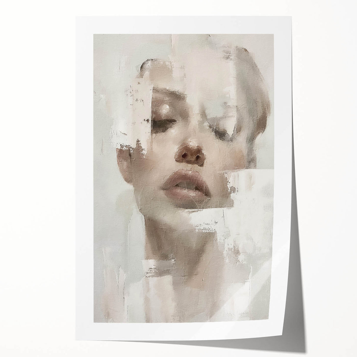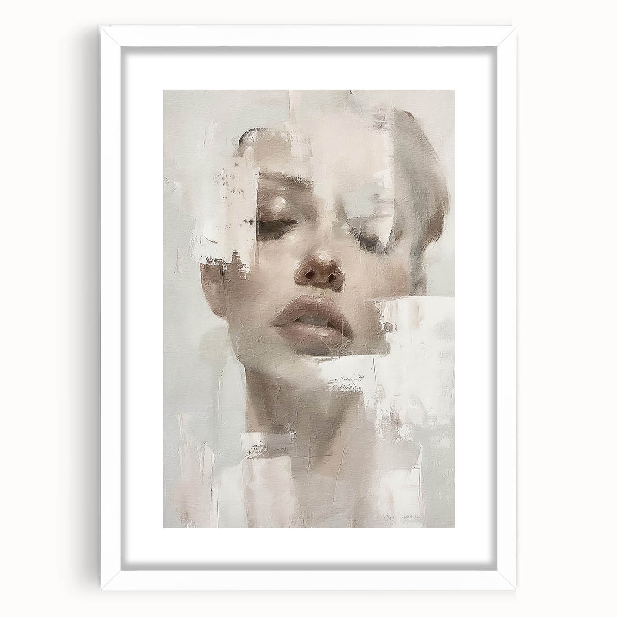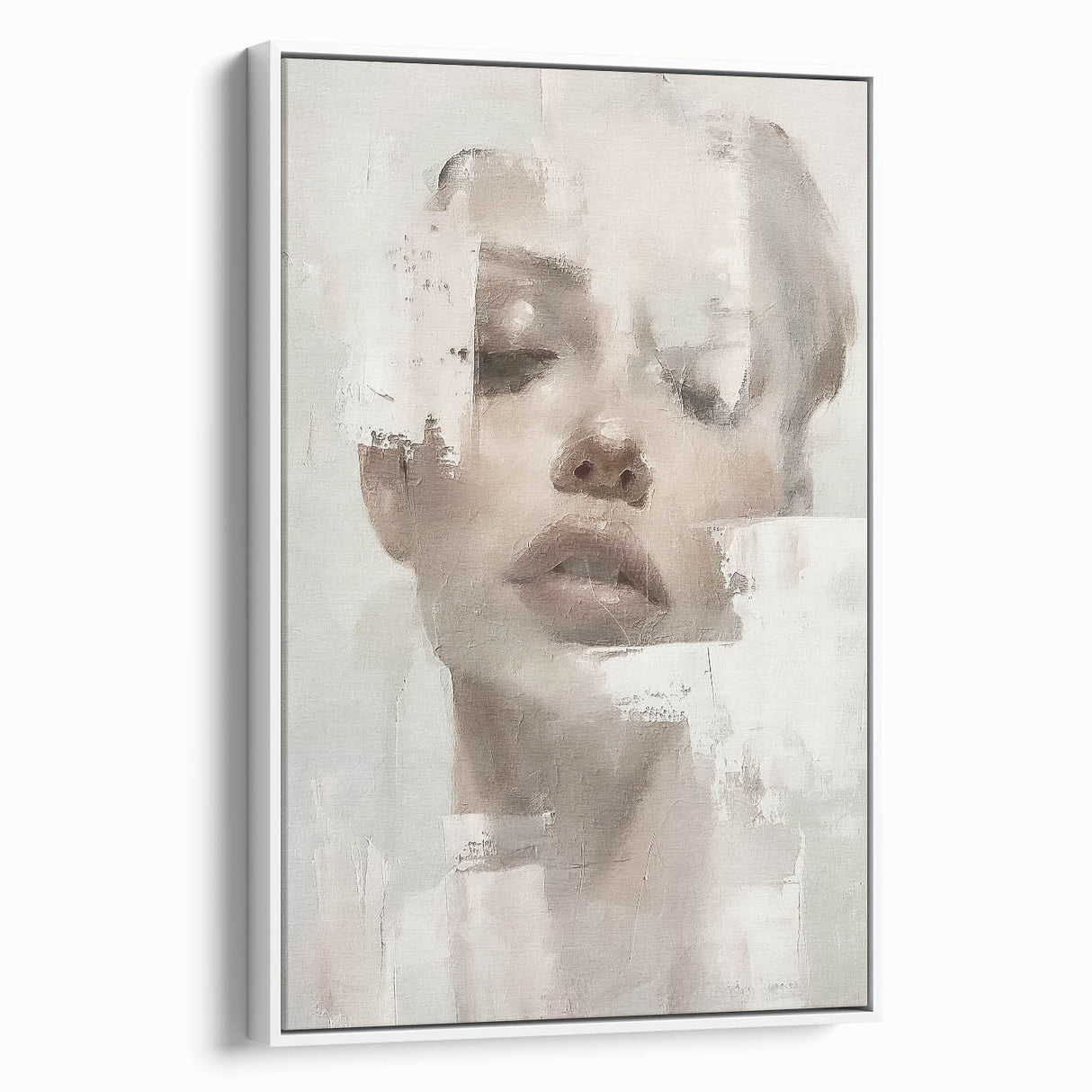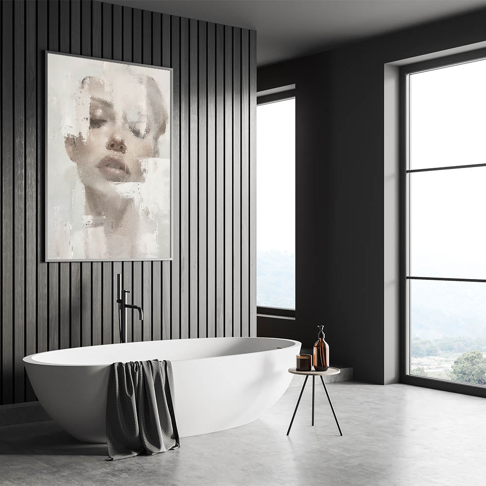 This elegant abstract figurative art piece offers a serene, sophisticated addition to any space. Featuring a softly textured portrait with delicate hues of cream, beige, and light gray, this artwork exudes a calm, minimalist aesthetic. The abstract portrayal of the human form, combined with subtle brushstrokes, invites a reflective and tranquil atmosphere, making it a beautiful choice for contemporary interiors.