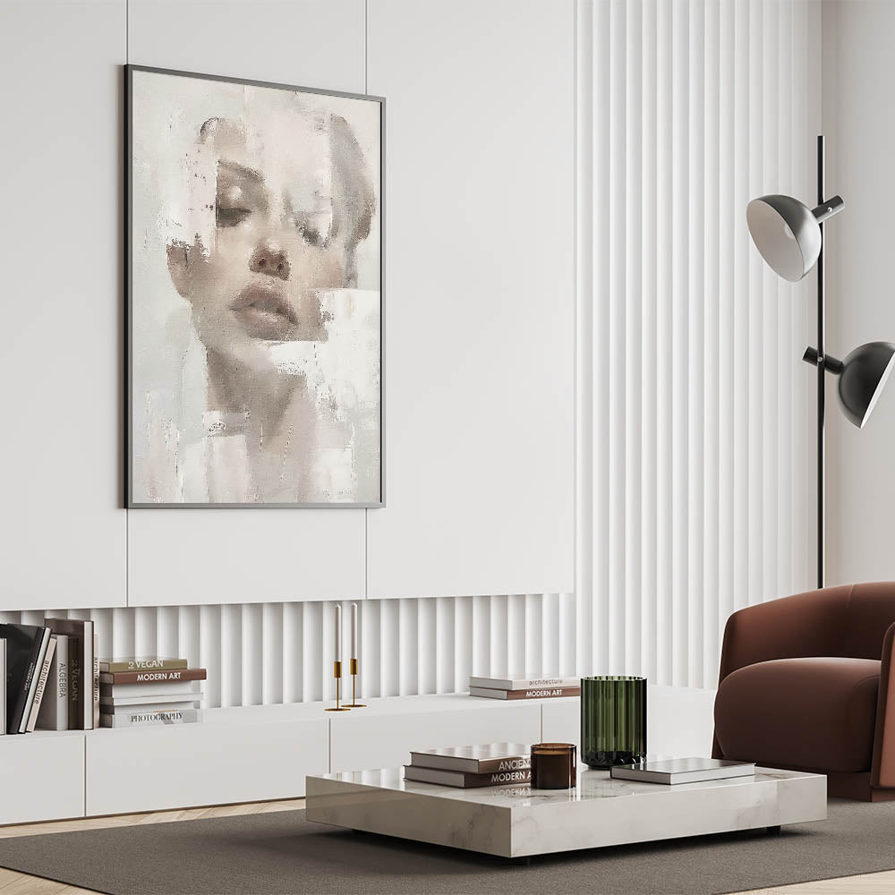 - Art Style: Abstract figurative design with a focus on minimalist tones and smooth textures, perfect for modern decor.
