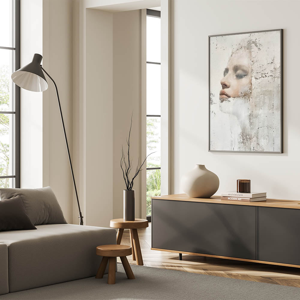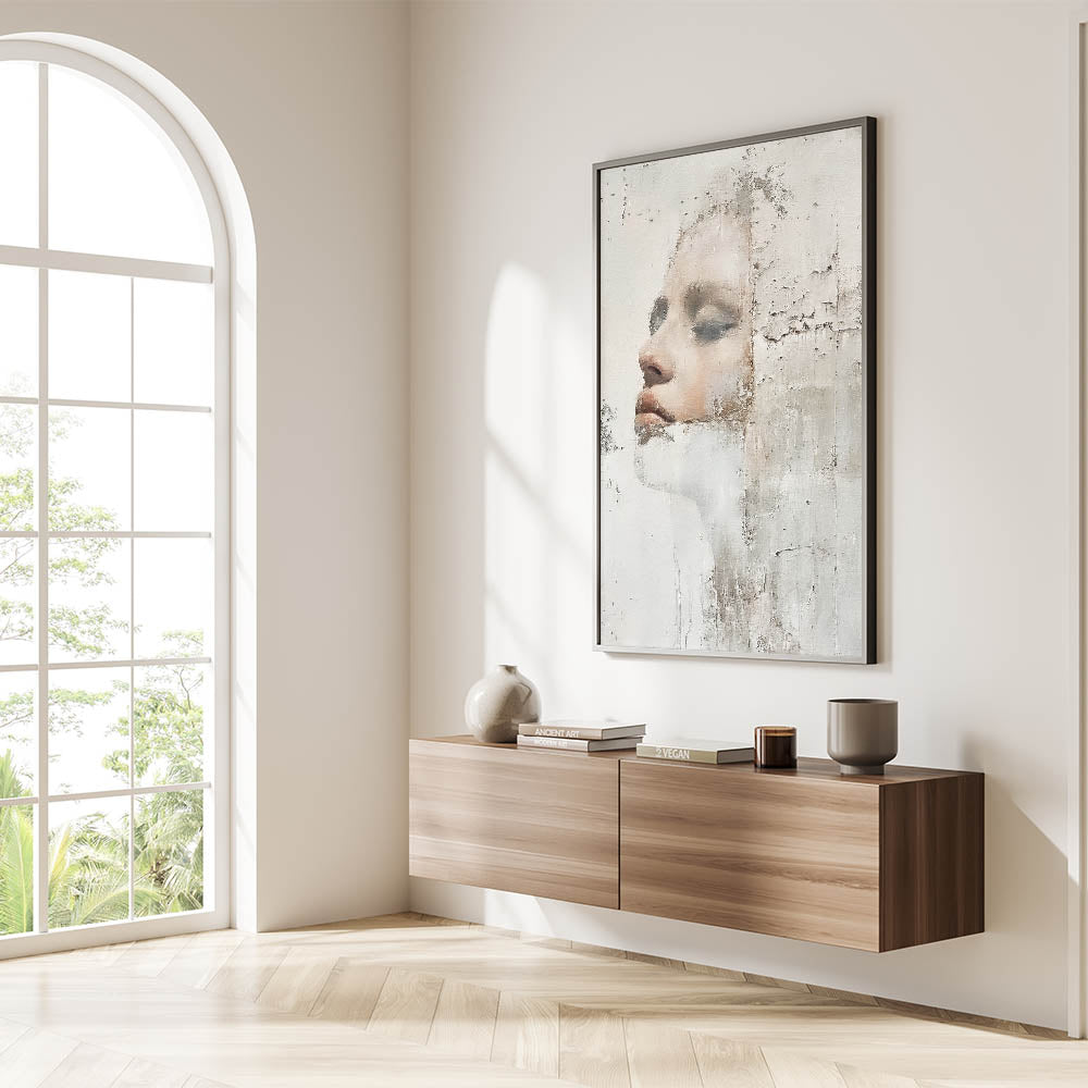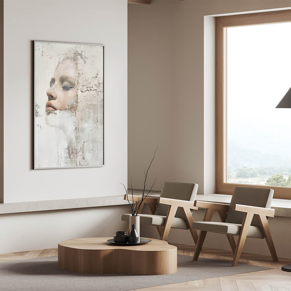 Transform your living space with this elegant and serene abstract figurative canvas, a part of our Abstracts collection. This artwork presents a calm and introspective profile, beautifully blending soft, earthy tones and minimalist textures. It captures a quiet moment, evoking a sense of tranquility that harmonizes well with modern and minimalist decor styles.