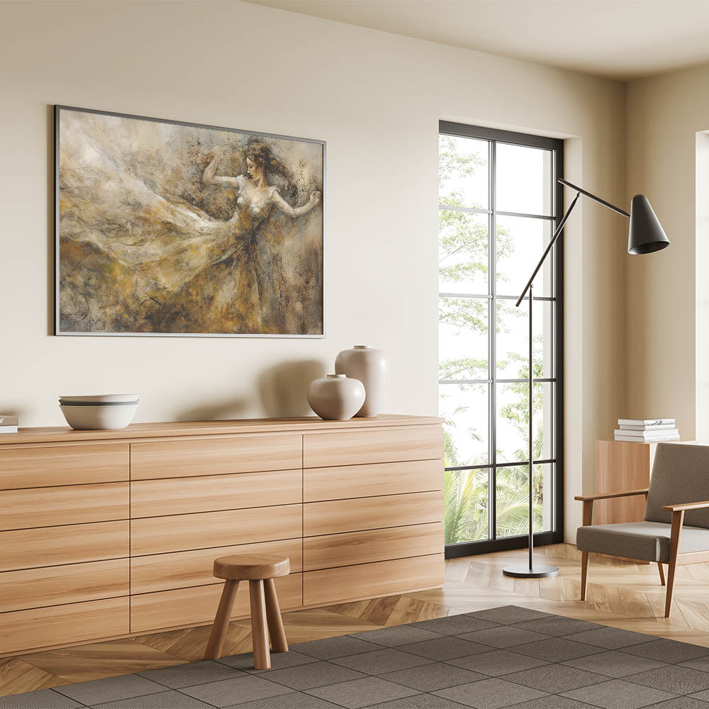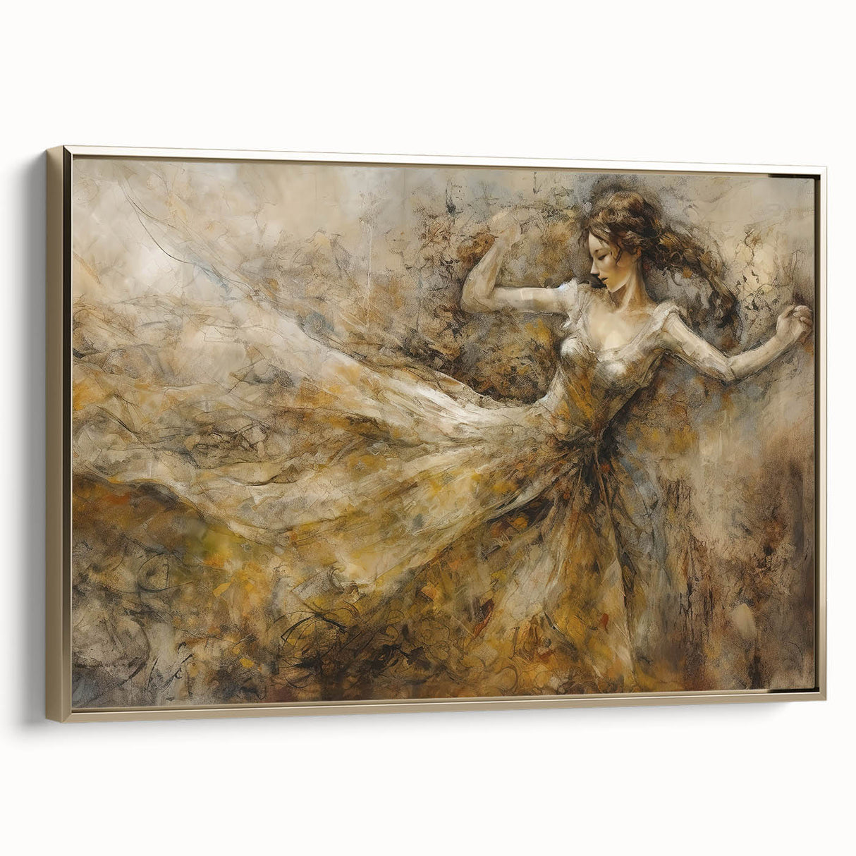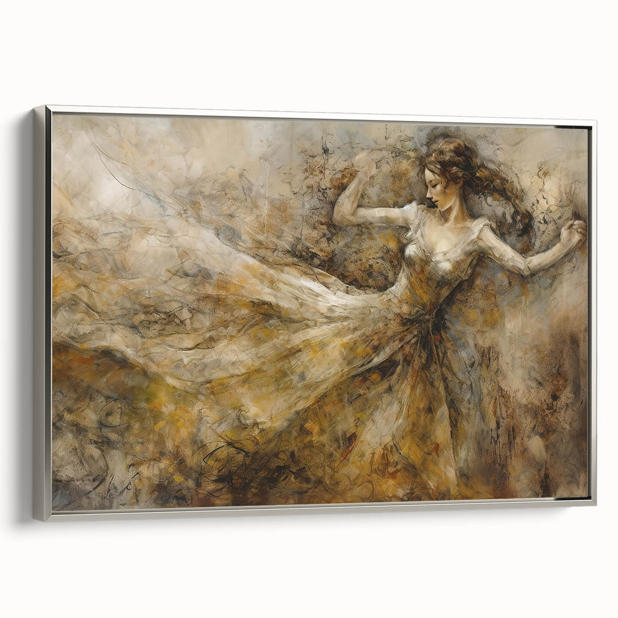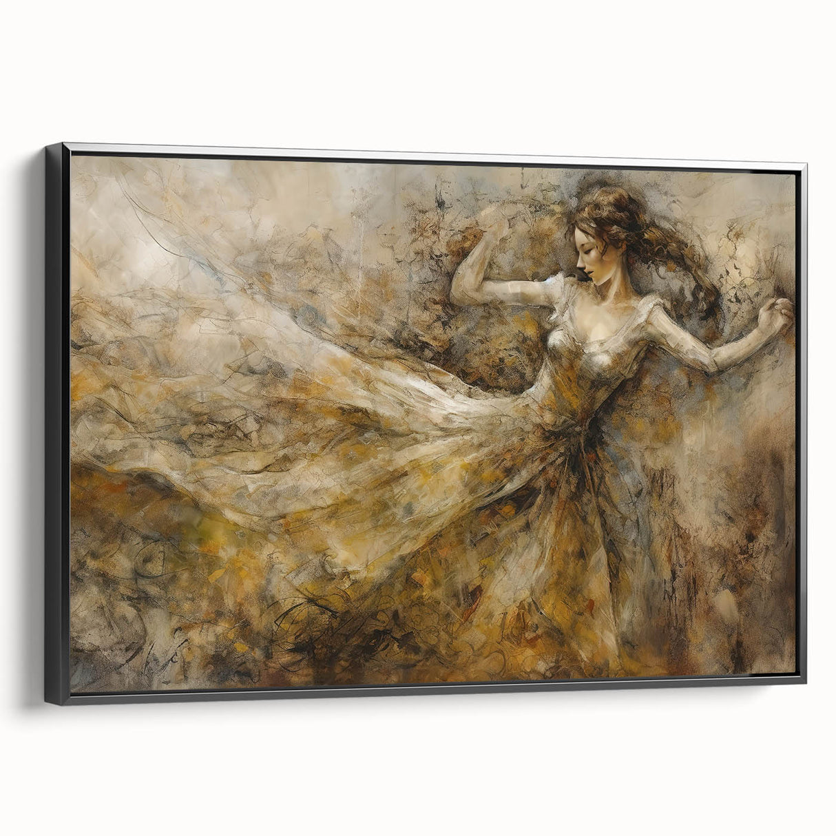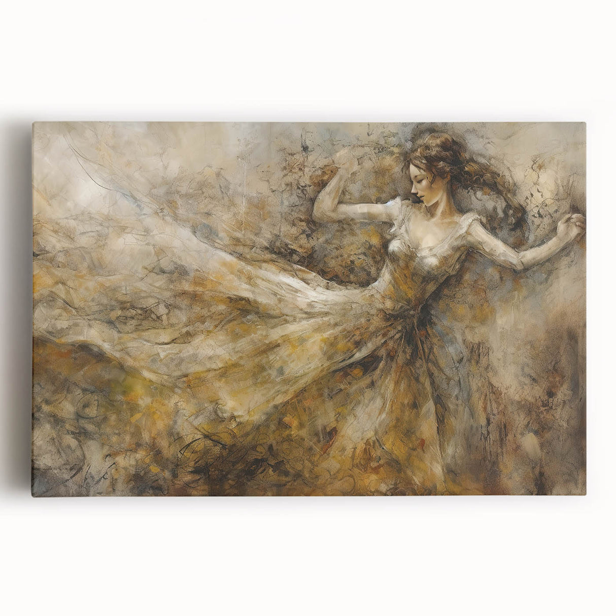 Elevate your home decor with our "Elegant Figurative Abstract Wall Art - Graceful Dancing Woman Canvas." This exquisite artwork portrays a woman dancing gracefully, captured in soft, flowing strokes and warm, earthy tones. The delicate details and gentle movement create a serene and sophisticated piece, perfect for adding a touch of elegance to any space.