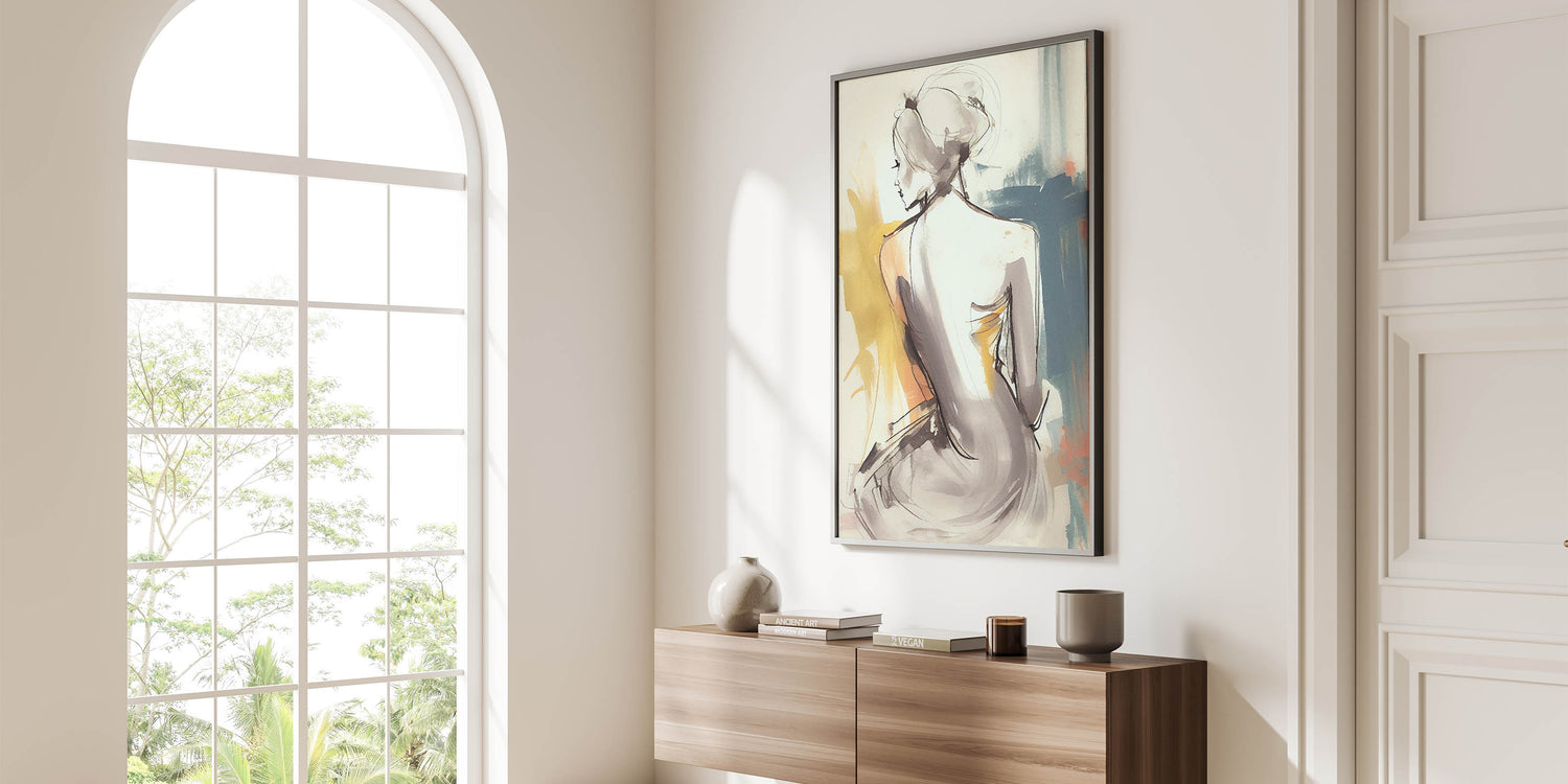 This artwork is perfect for art lovers who appreciate quiet elegance and simplicity. Its soft colors and expressive lines make it a versatile piece that enhances the ambiance of any room with a sense of calm and refinement.