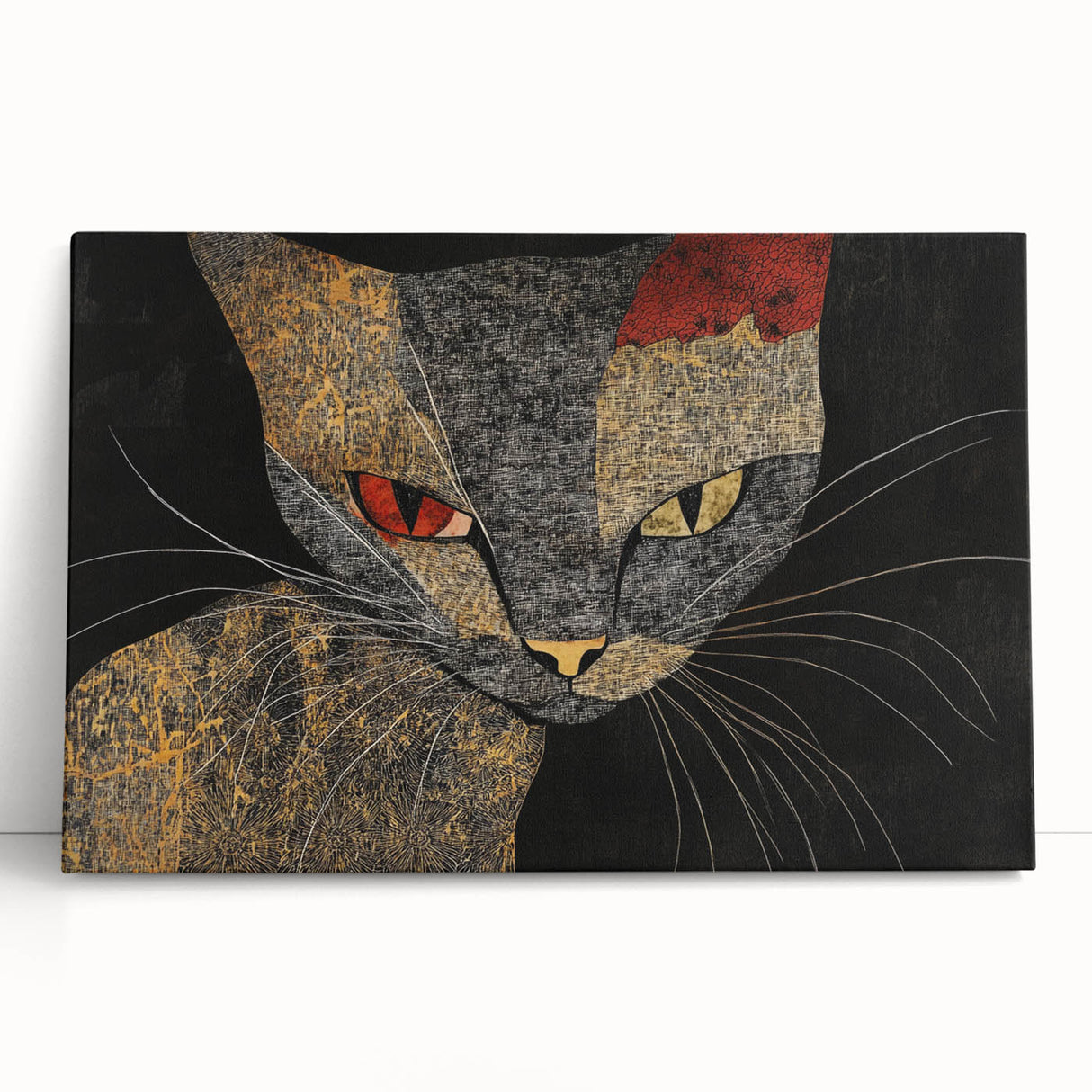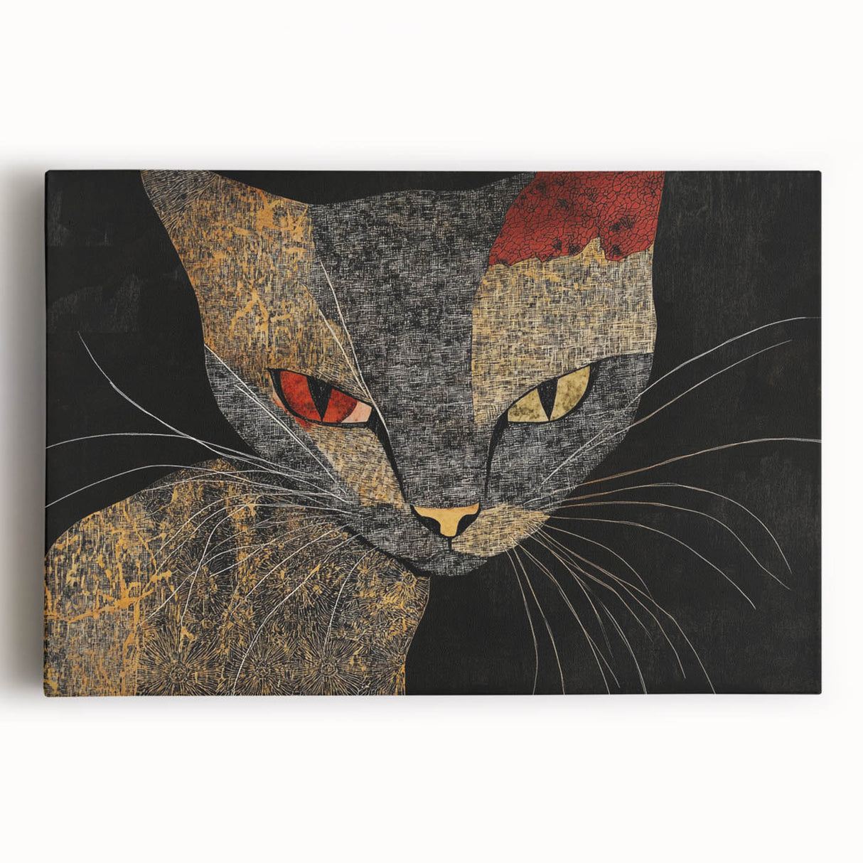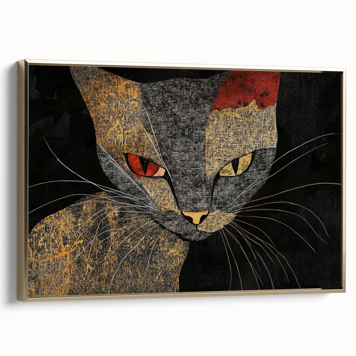 Modern Abstract Cat Wall Art – Bold Black & Gold Canvas Print