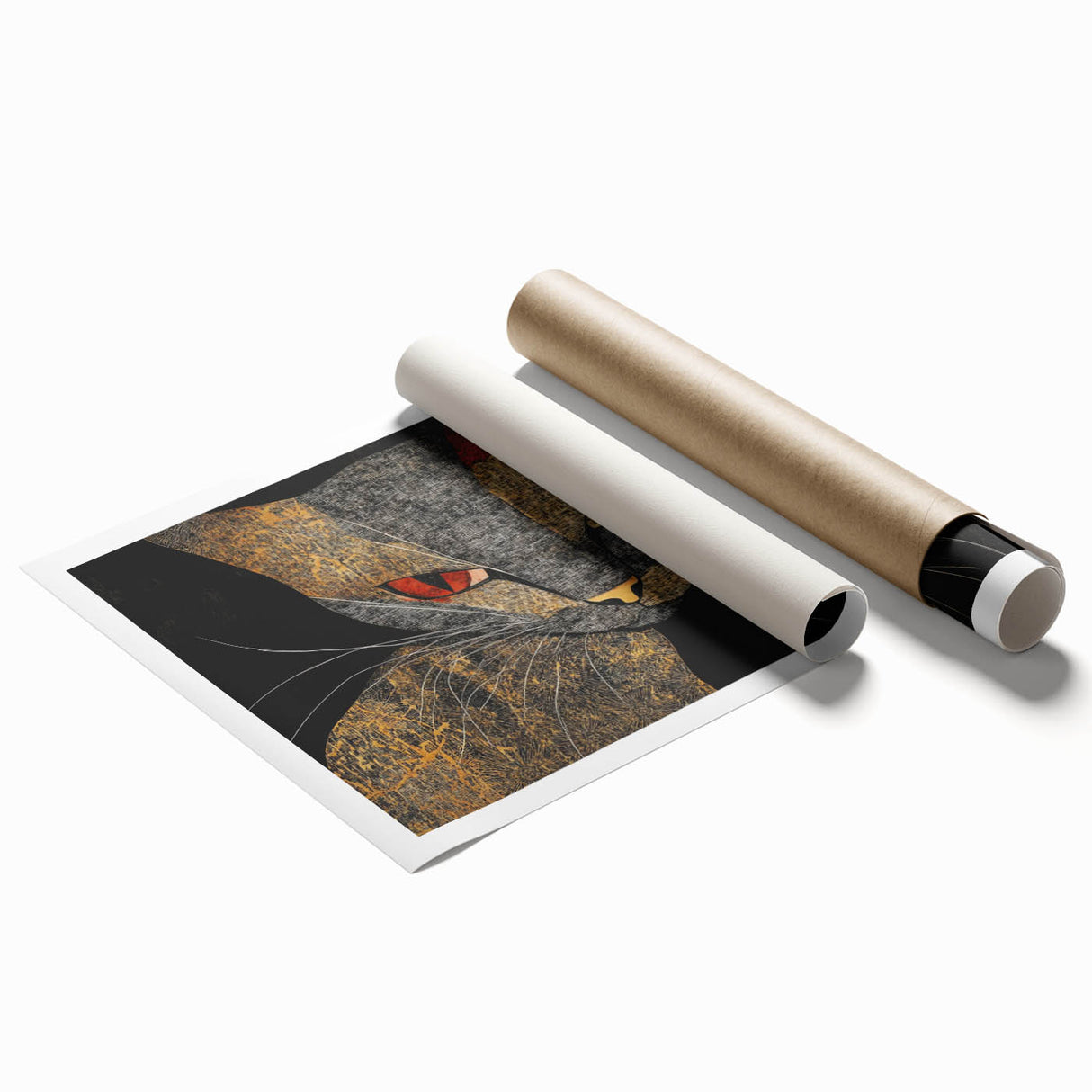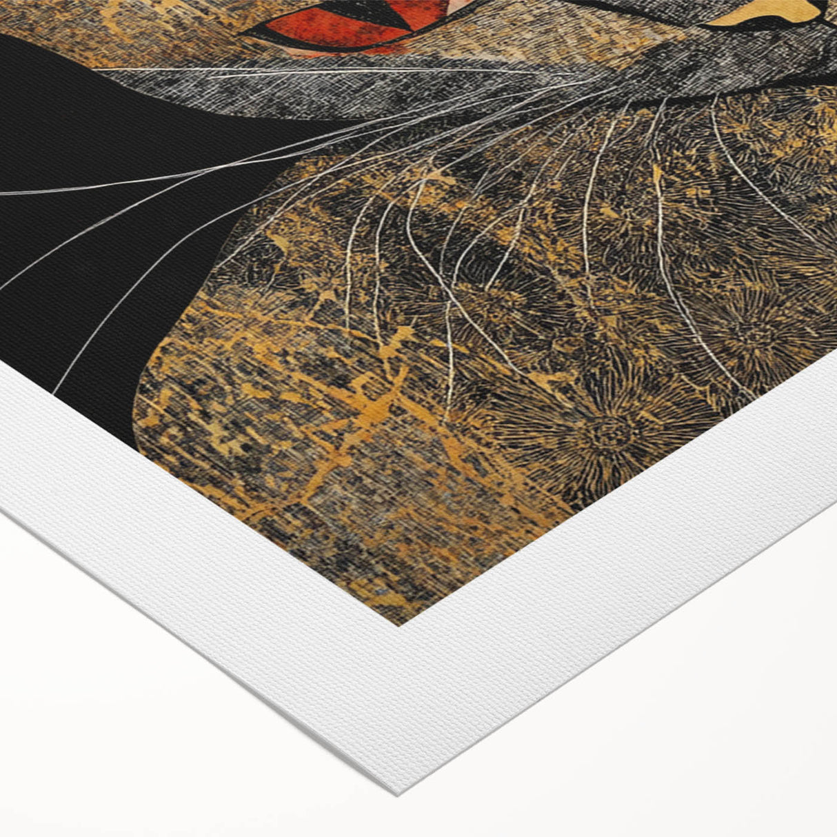 Make a bold statement with this abstract floral artwork for home decor, featuring a mesmerizing feline design in a mix of black, gold, and red textures. This modern flower abstract painting merges artistic detailing with contemporary styling, making it a perfect contemporary botanical canvas print for those who love expressive and unique wall art. The intricate patterns and rich contrasts create an eye-catching large-scale flower abstract art piece that stands out in any space.
